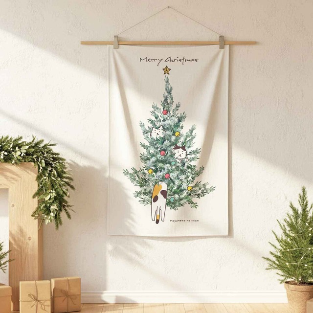 猫ちゃんたちのクリスマスタペストリー まゆねことクリスマスツリー