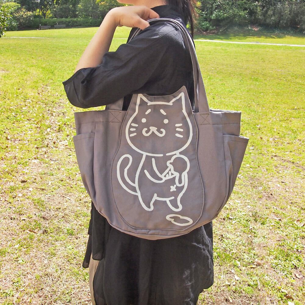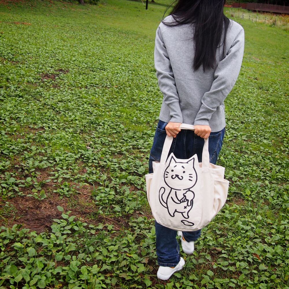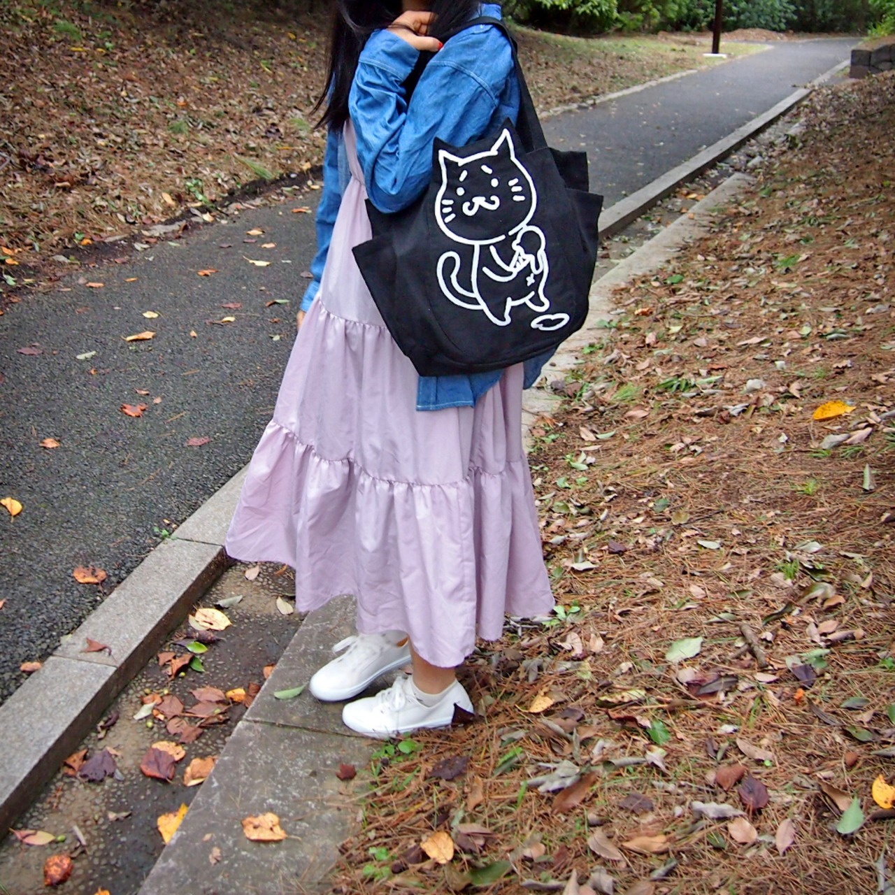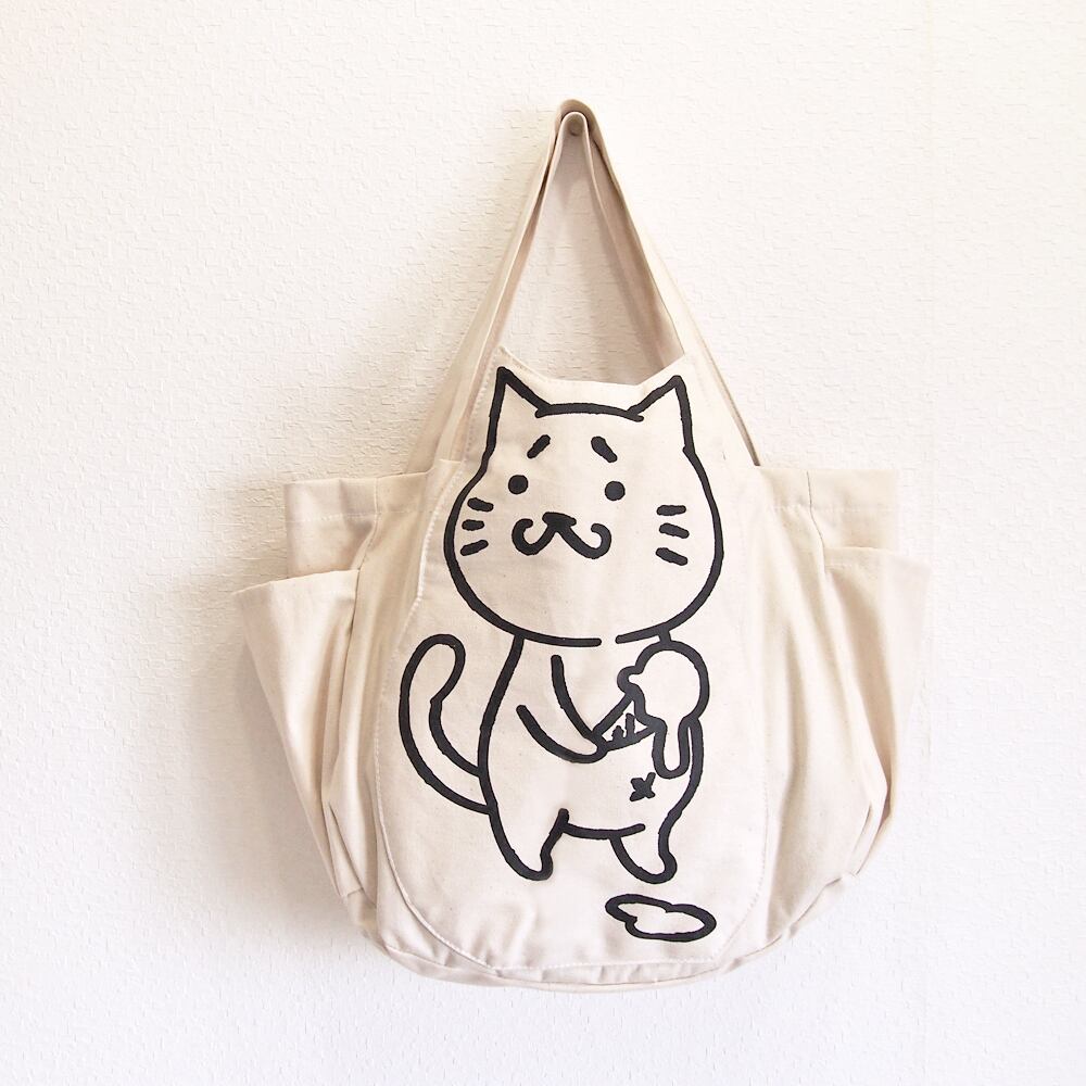 大人気の猫イラスト柄。男女問わずお使い頂けるねこトートバッグです。
