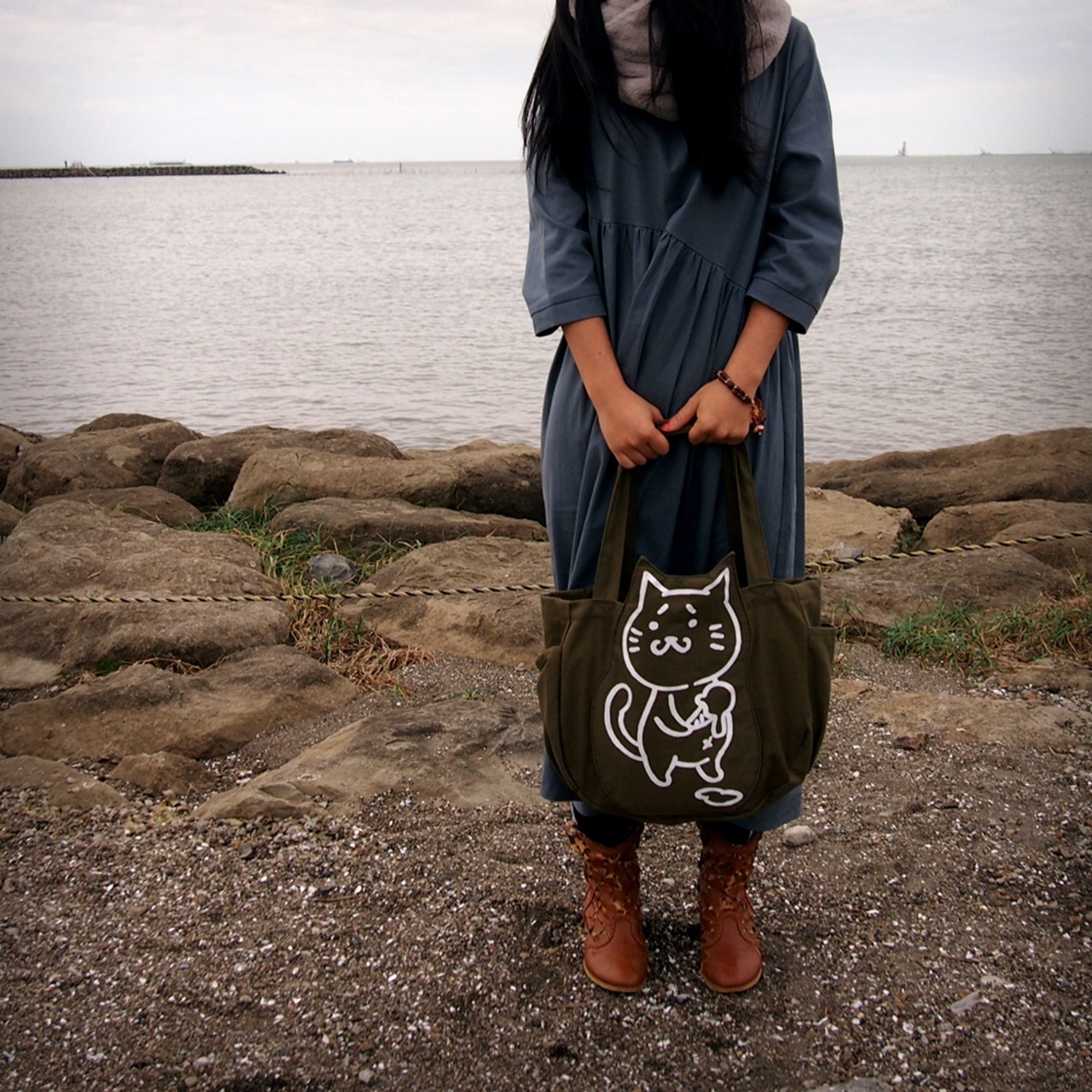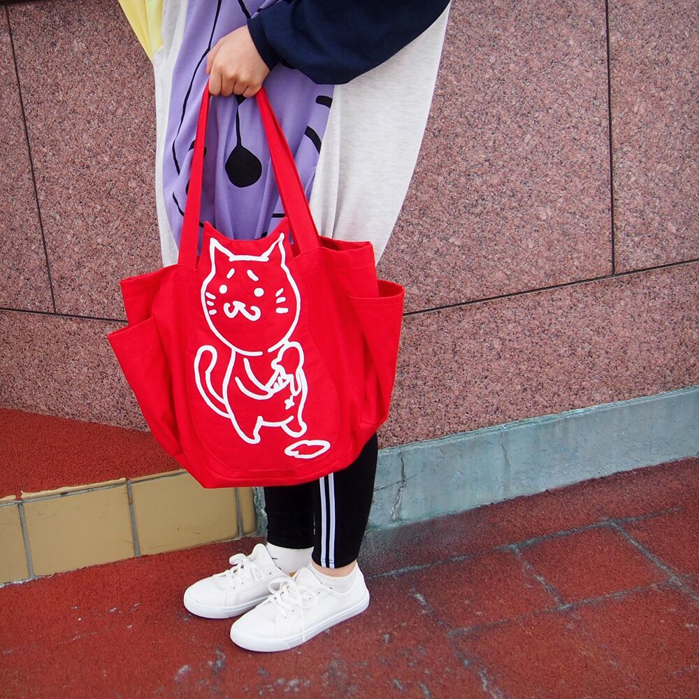 猫トートバッグ A4帆布 エコバッグ 差し色 Cat Tote Bag