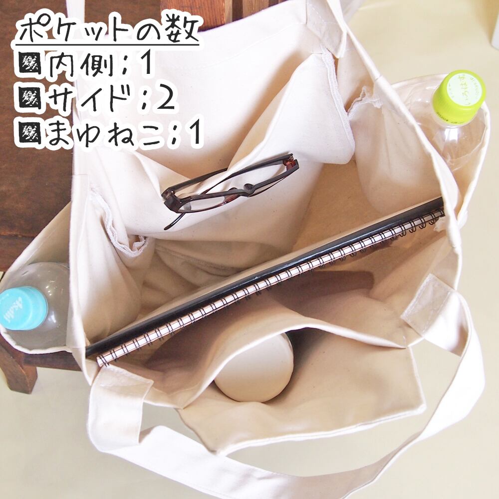 まゆねこA4トートバッグ 帆布 エコバッグ 差し色ですもに