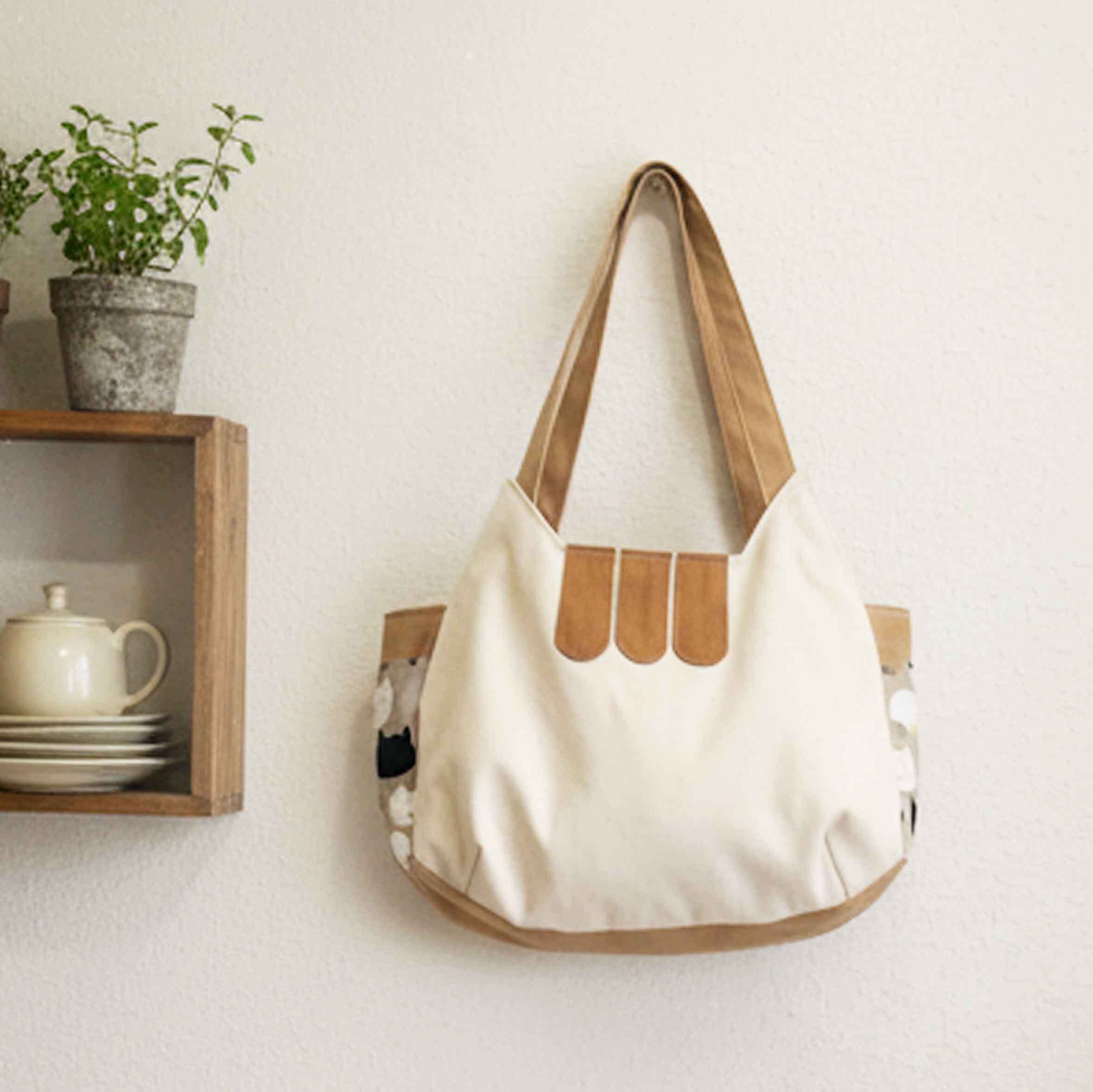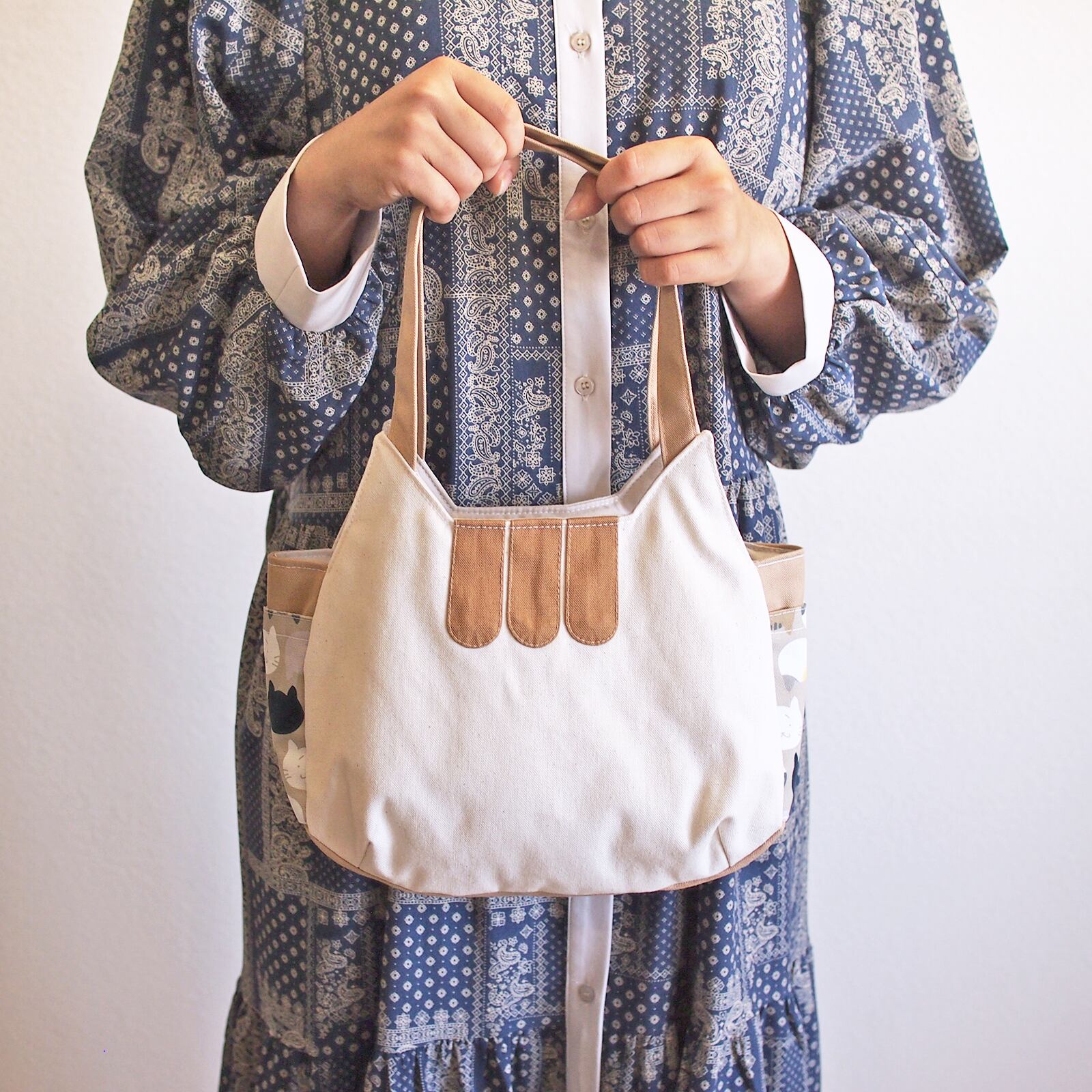 ■パッチワーク風の柄がかわいい、丸みのあるバッグに仕上げました。