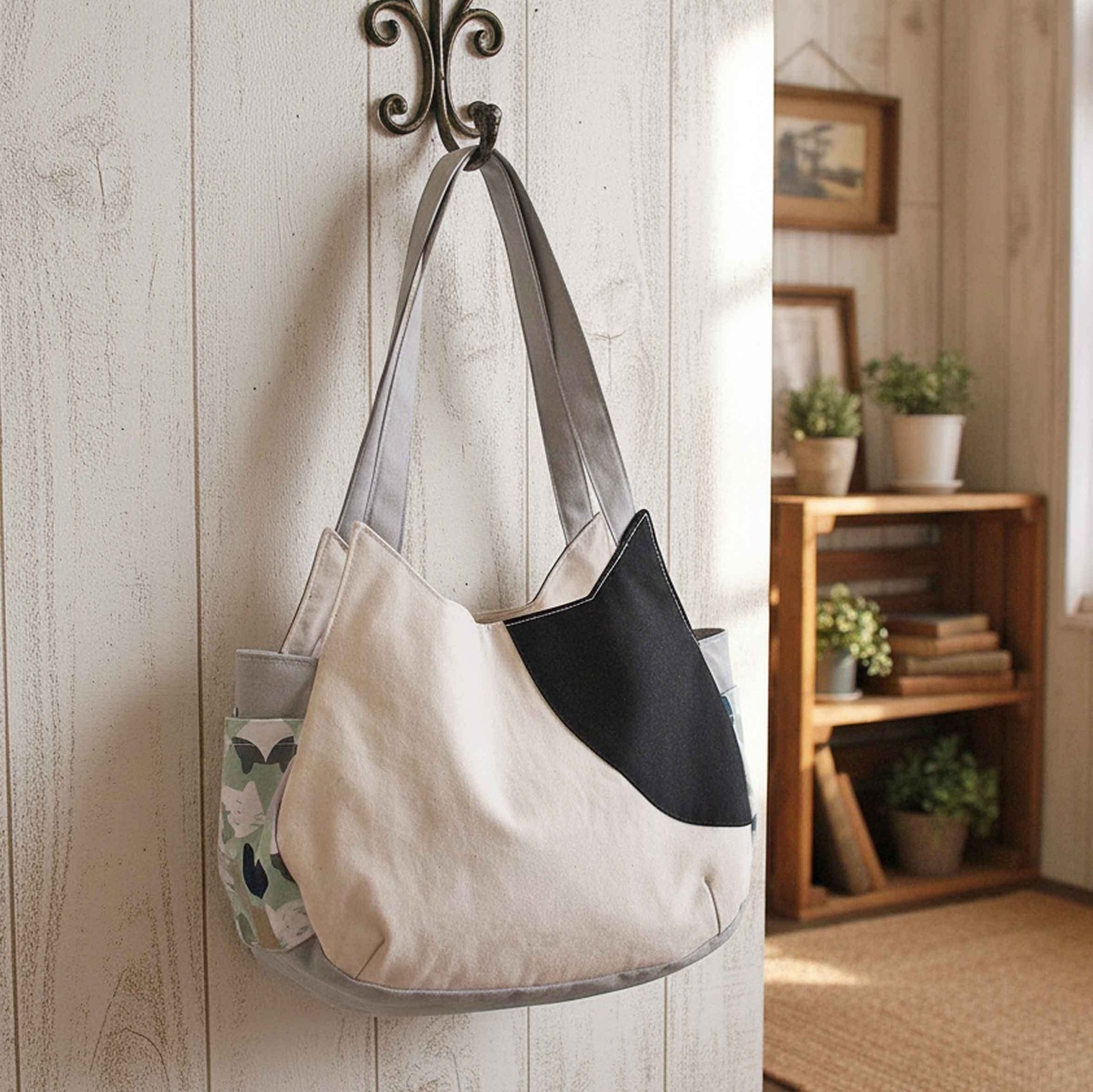 猫の顔トートバッグ ブチ柄 Cat Tote Bag