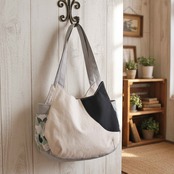 ■パッチワーク風の柄がかわいい、丸みのあるバッグに仕上げました。