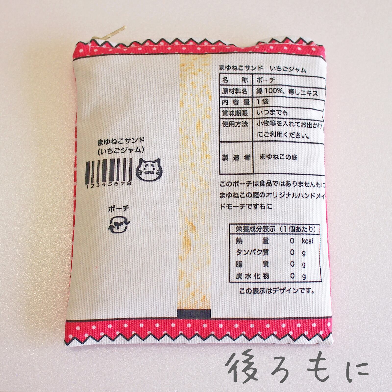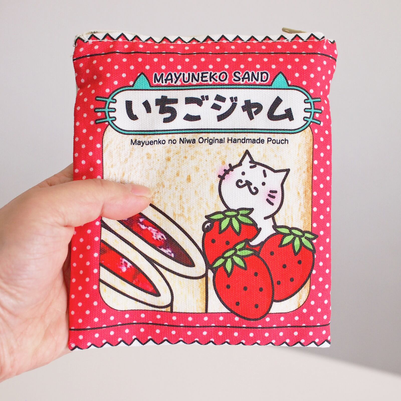 猫パン柄ポーチ いちごジャム 化粧 小物入れ 苺 まゆねこですもに