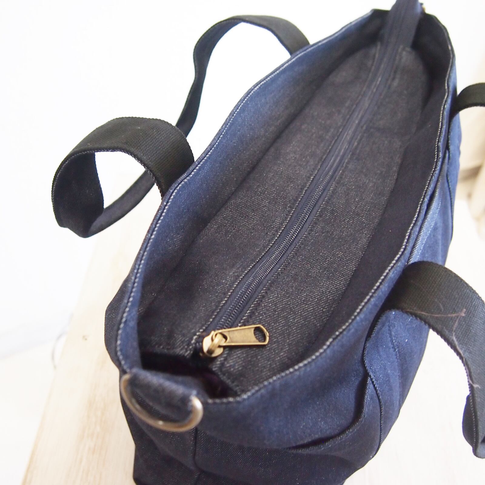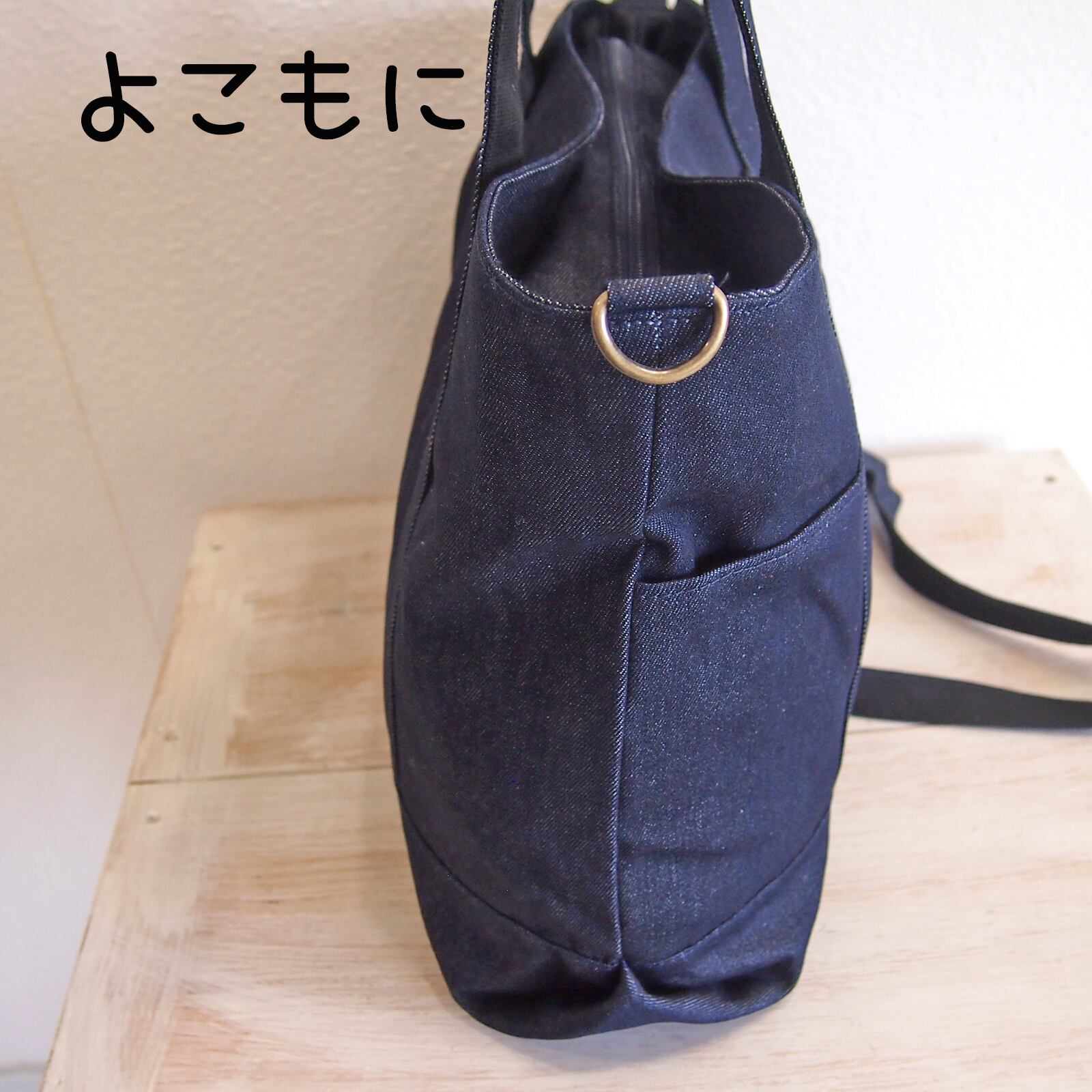 ネイビーなキャンバス地のトートバッグもによ