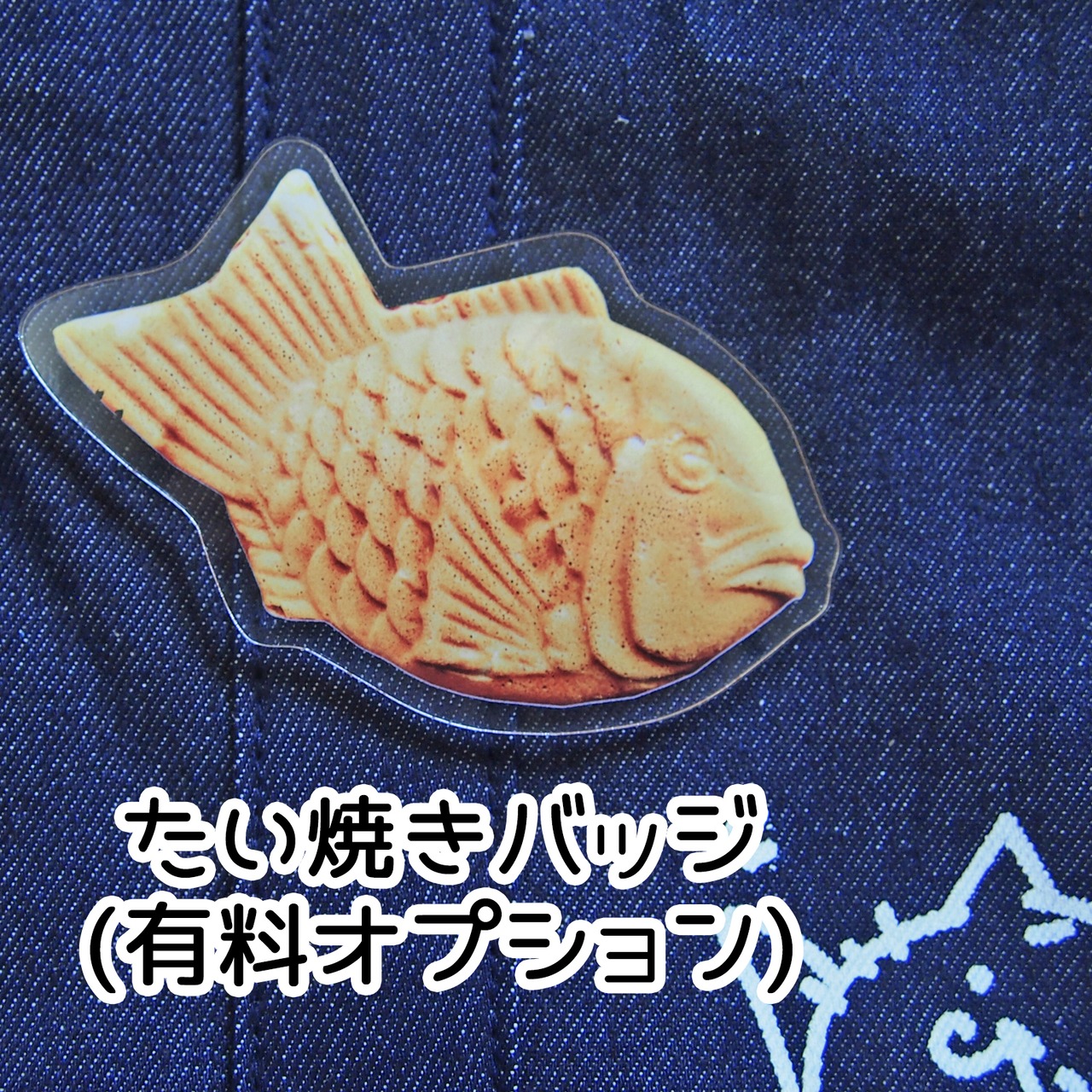 ※ 10cmの大きな「たい焼きバッジ」は有料オプションになりますもに