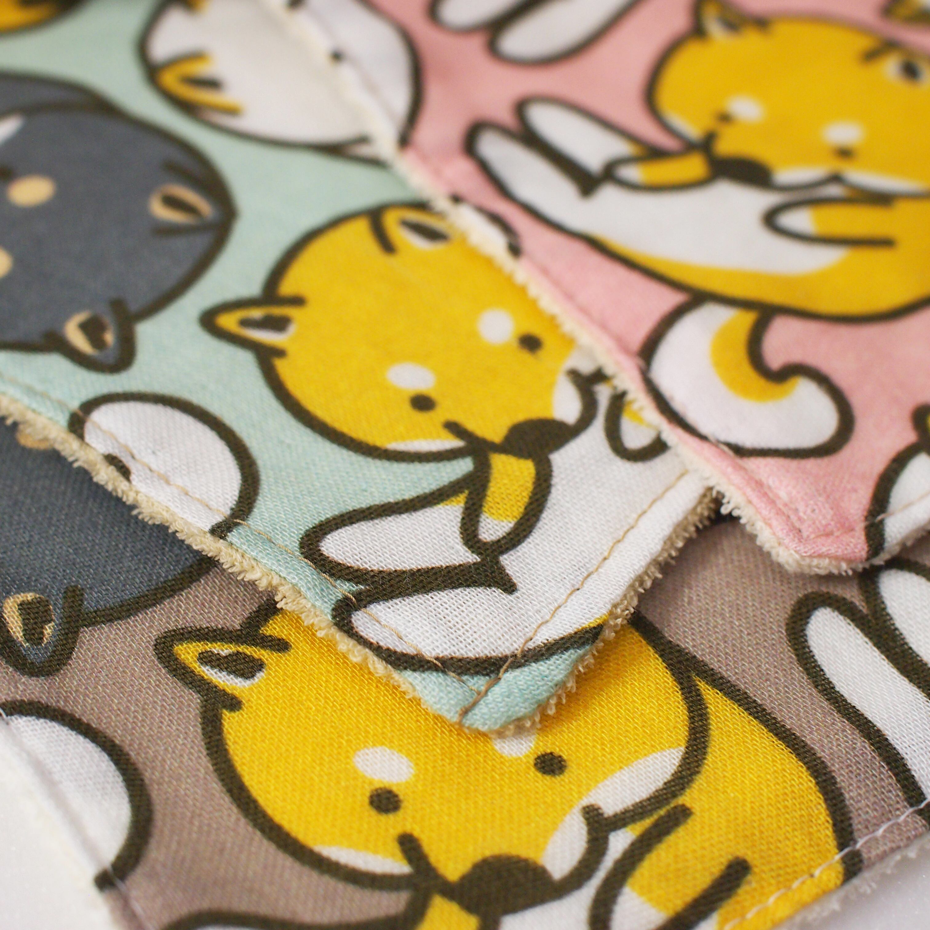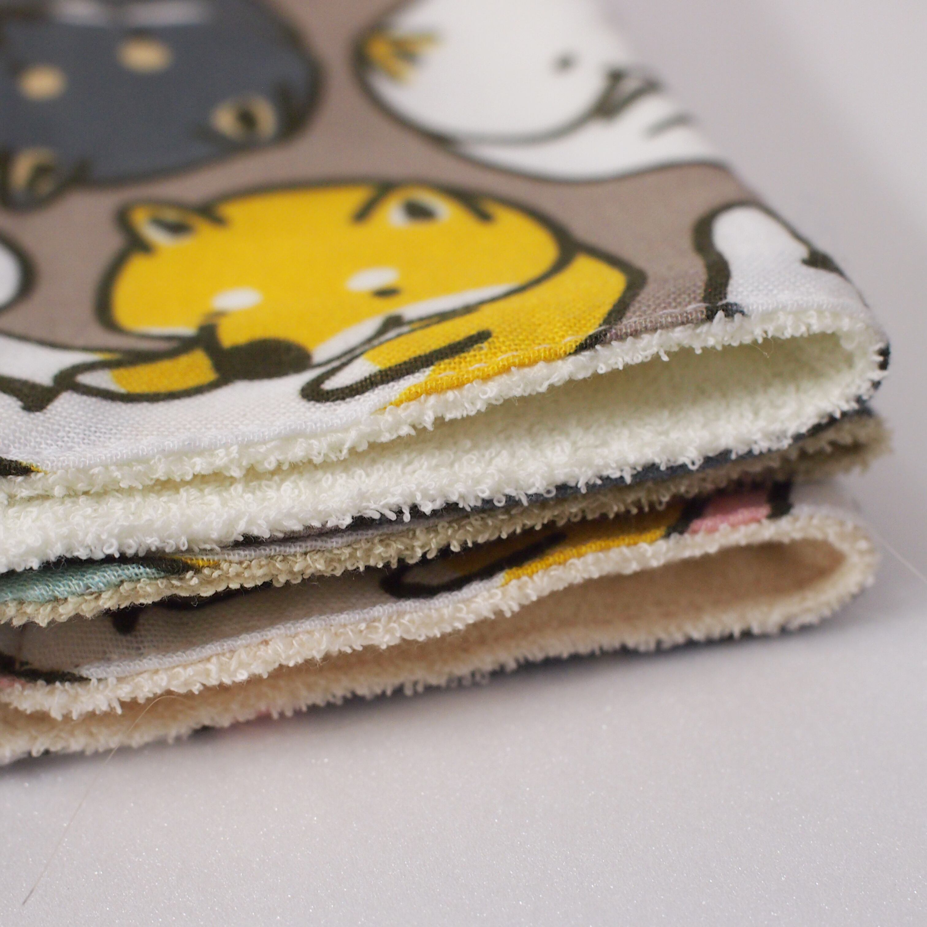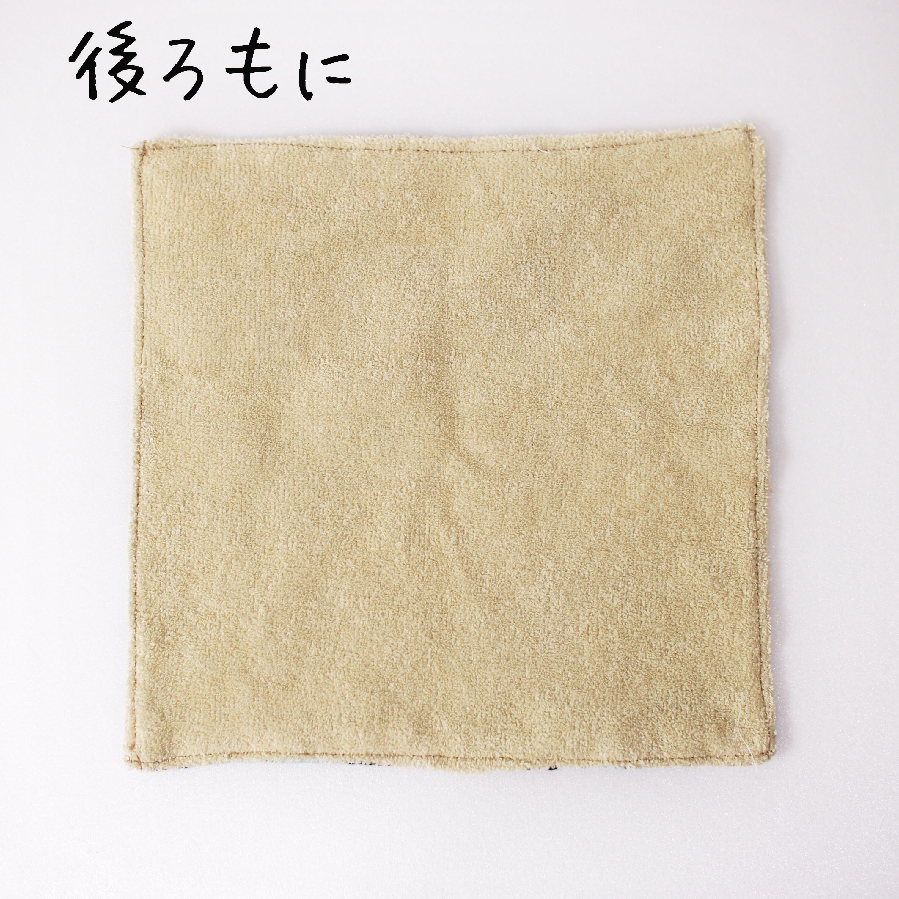 柄側がダブルガーゼ、無地側はパイル地を合わせてハンカチを作りました。