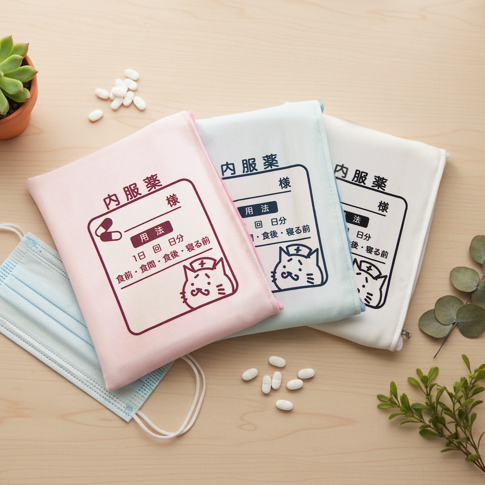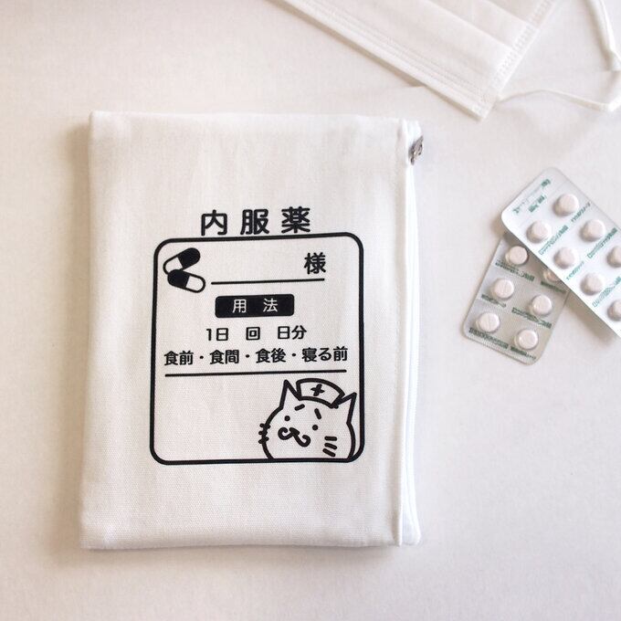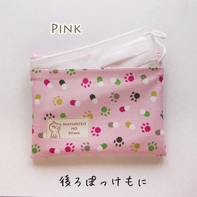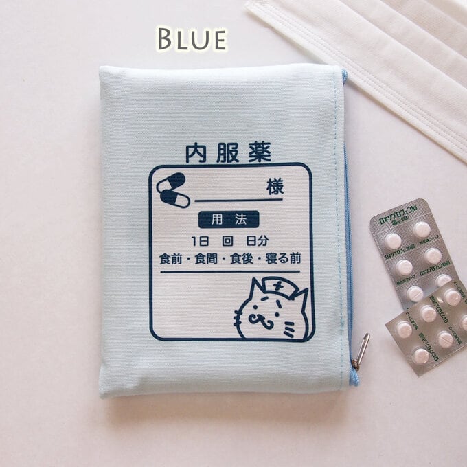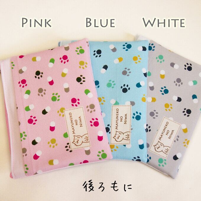 お薬袋のようなまゆねこポーチ 白 ブルー ピンク
