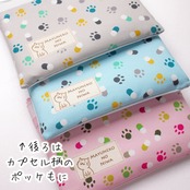 ■ 後ろのポケットはオリジナルの小さな肉球&お薬カプセル柄の生地を使いました。タグは印刷になります