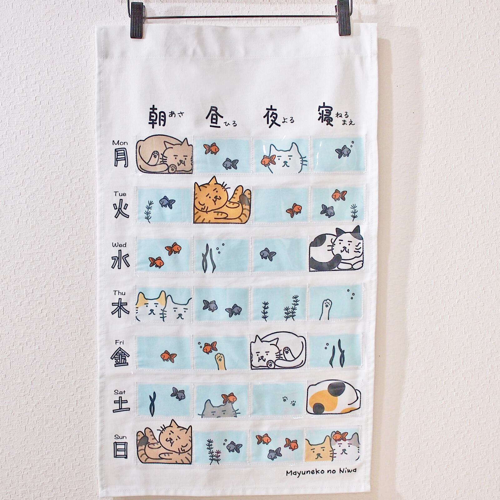まゆねこ お薬カレンダー 水槽に金魚と猫いっぱい ですもに