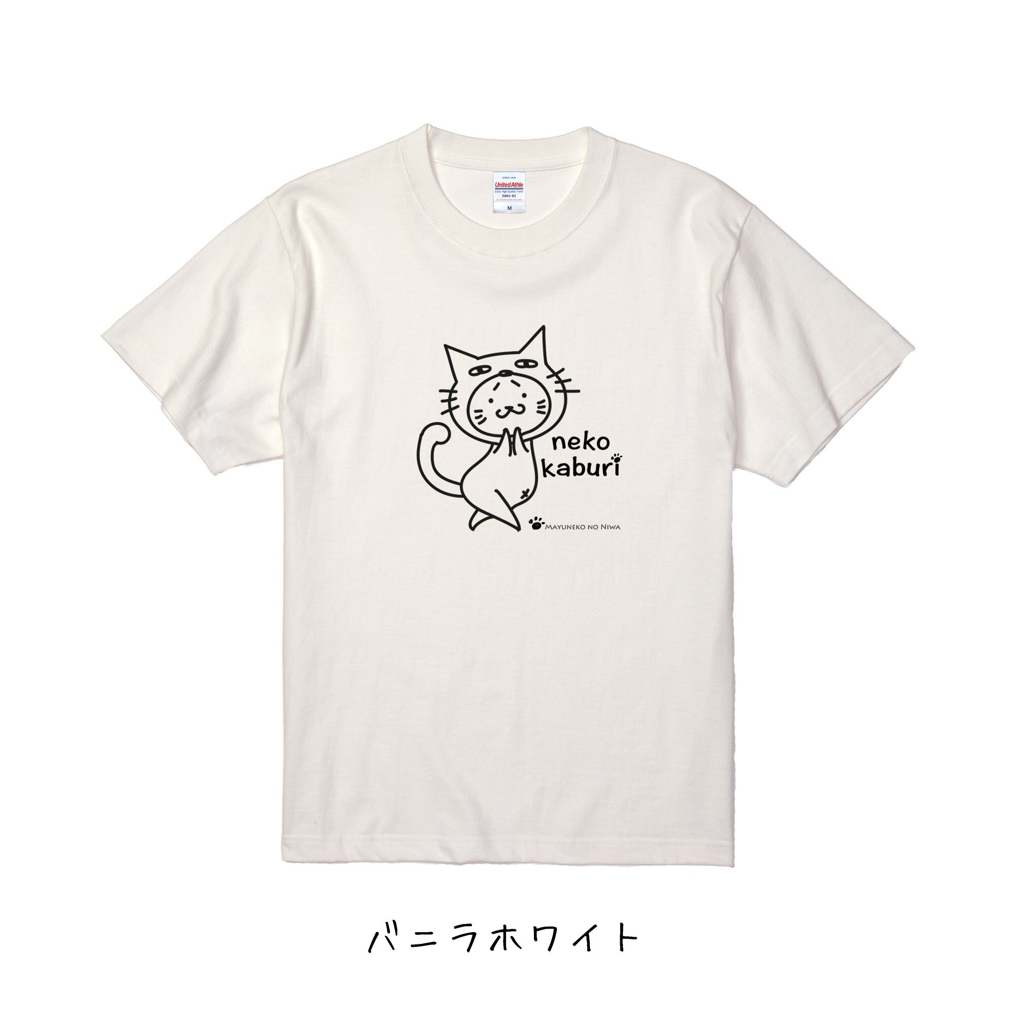 お好きなカラーとサイズの半袖Tシャツに、ねこかぶり柄をプリントするもによ