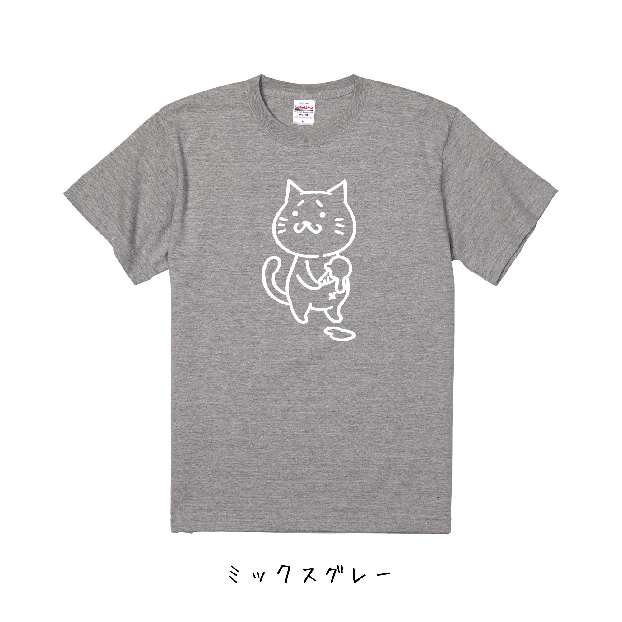 お好きなカラーとサイズの半袖Tシャツに、アイスねこ柄をプリントするもによ