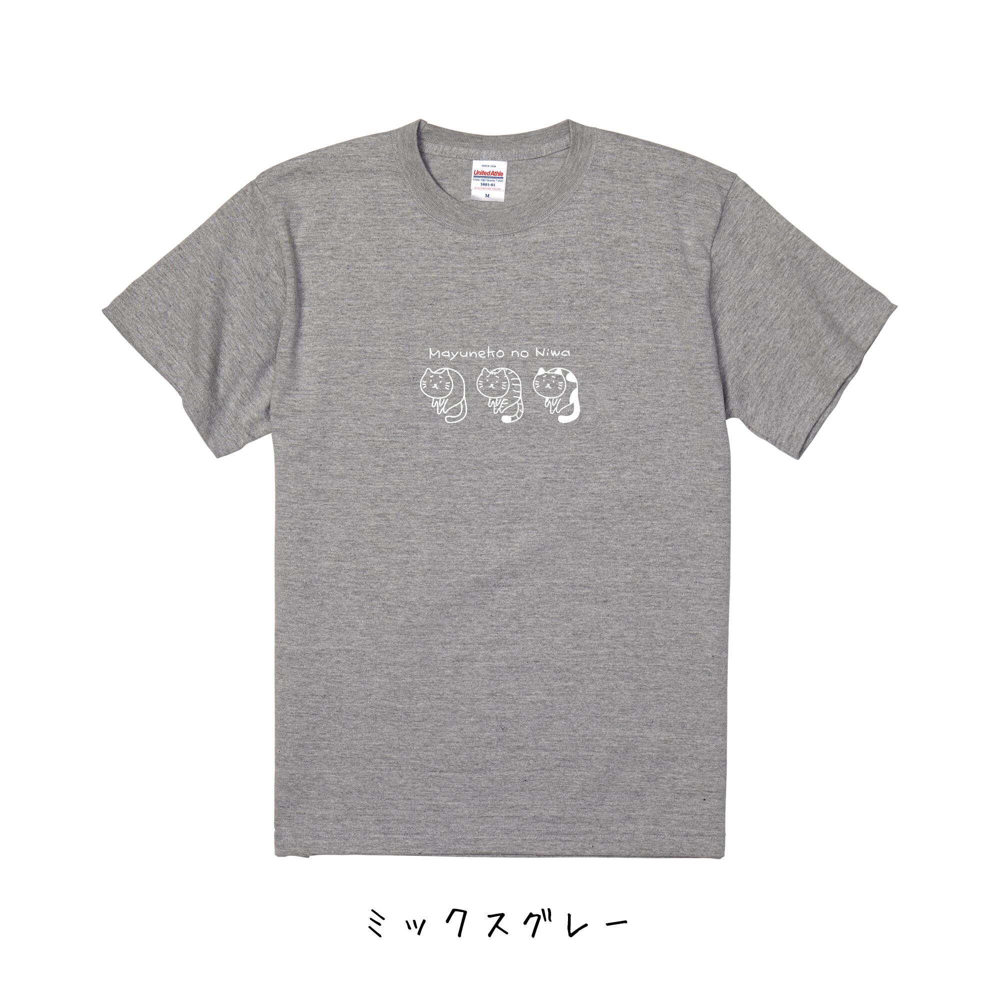 お好きなカラーとサイズの半袖Tシャツに、3匹ねこ柄をプリントするもによ