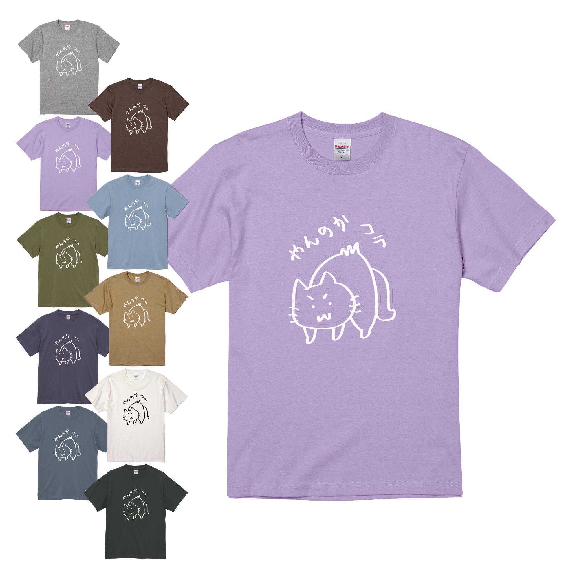お好きなカラーとサイズの半袖Tシャツに、おこりんぼ猫柄をプリントするもによ