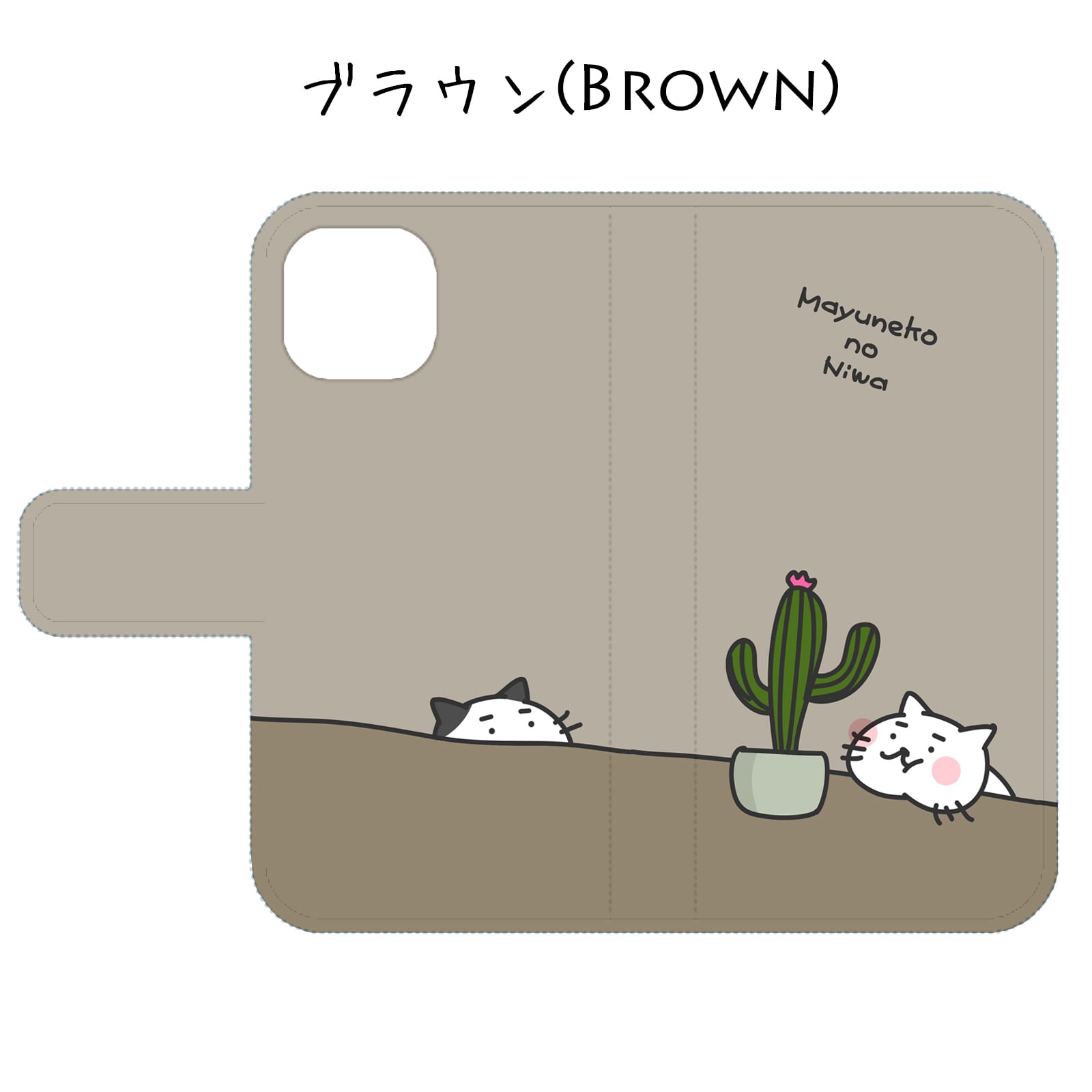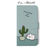 iPhone サボテンと猫2柄 手帳型スマホケース cat ですもに