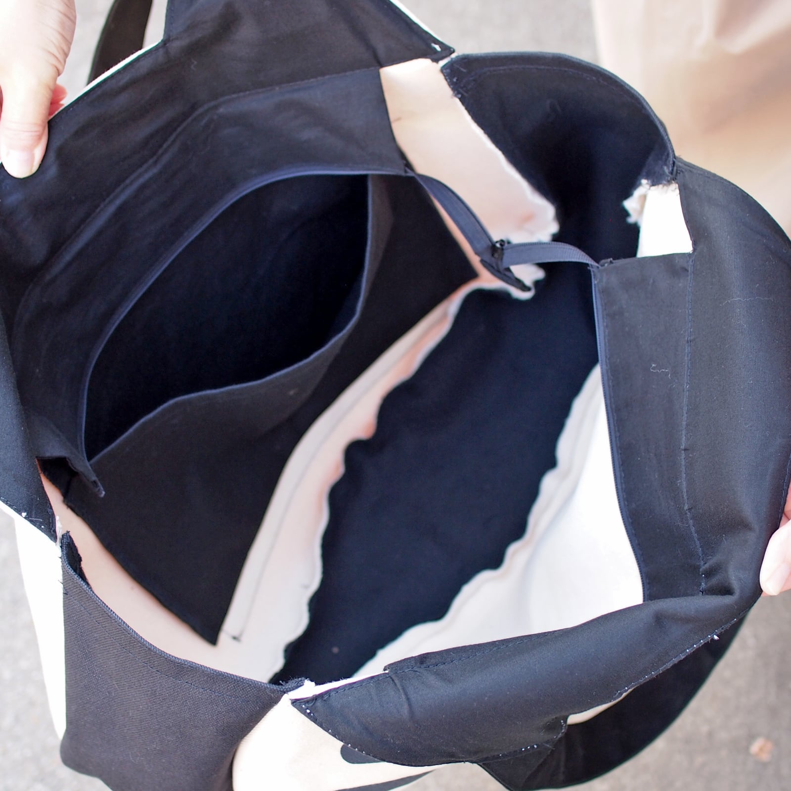 取っ手、ジップ部分、ポケットは11号帆布です。