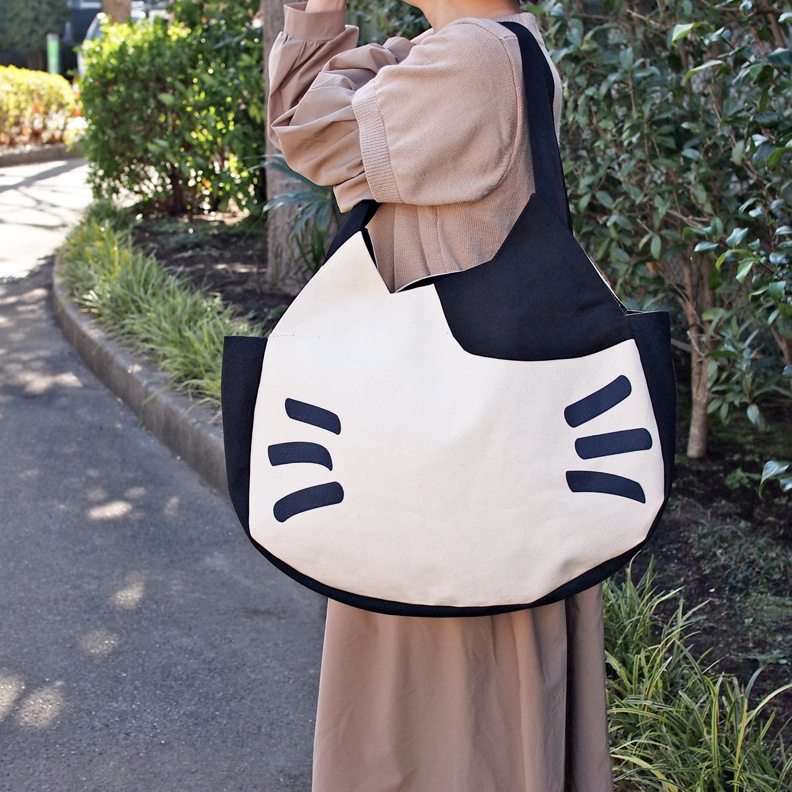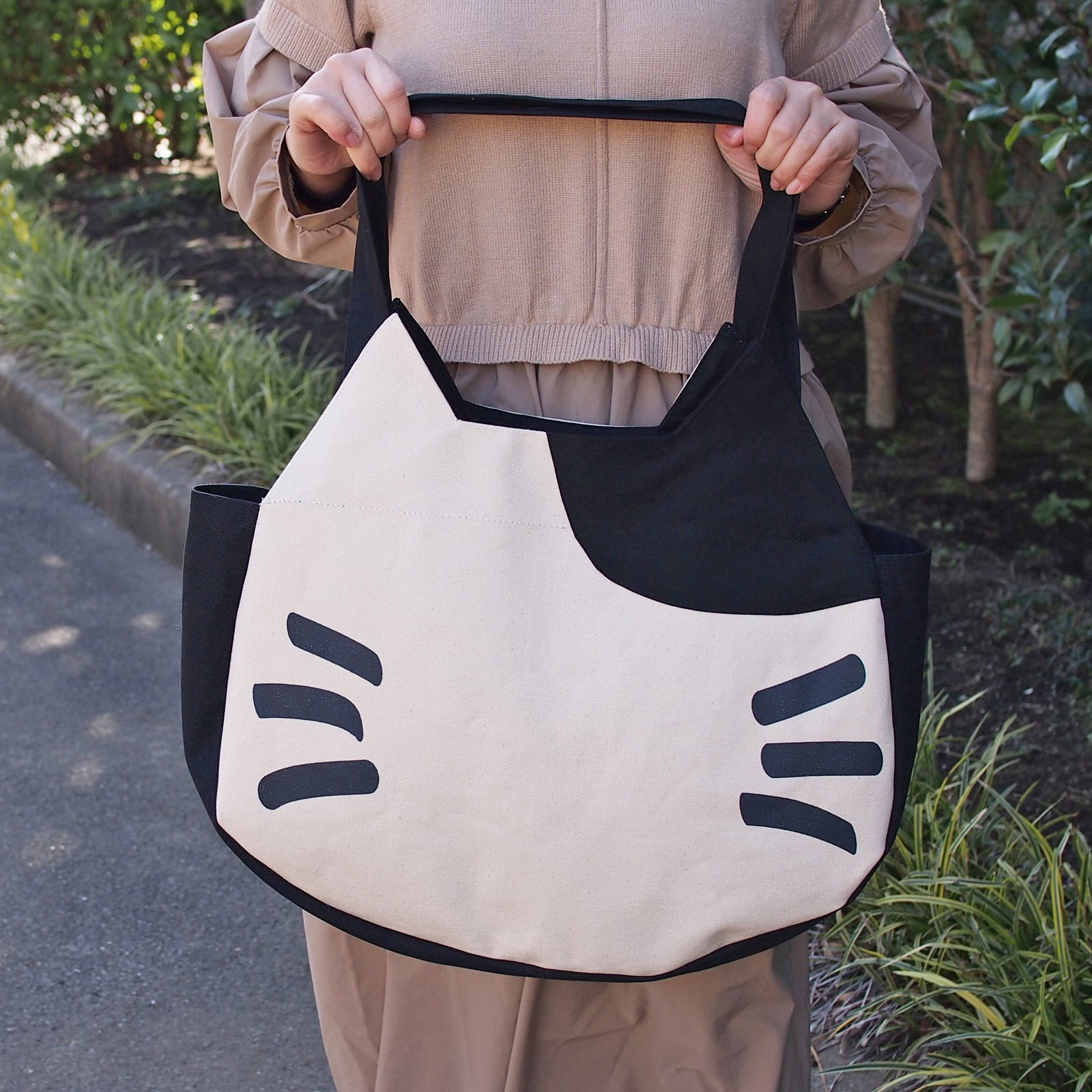 大きな猫顔トートバッグ ブチ Cat Tote Bag