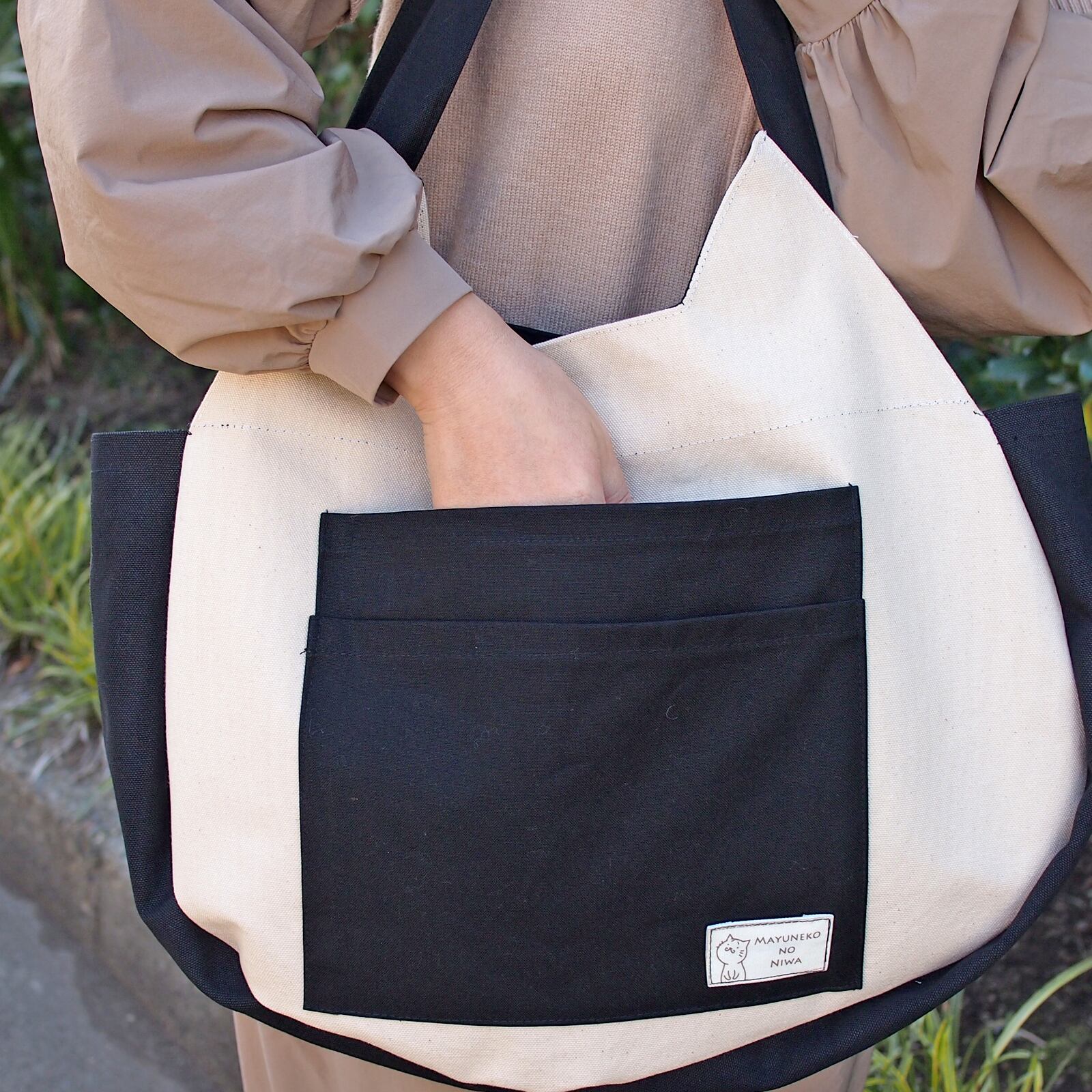 大きな猫顔トートバッグ ブチ Cat Tote Bagですもに