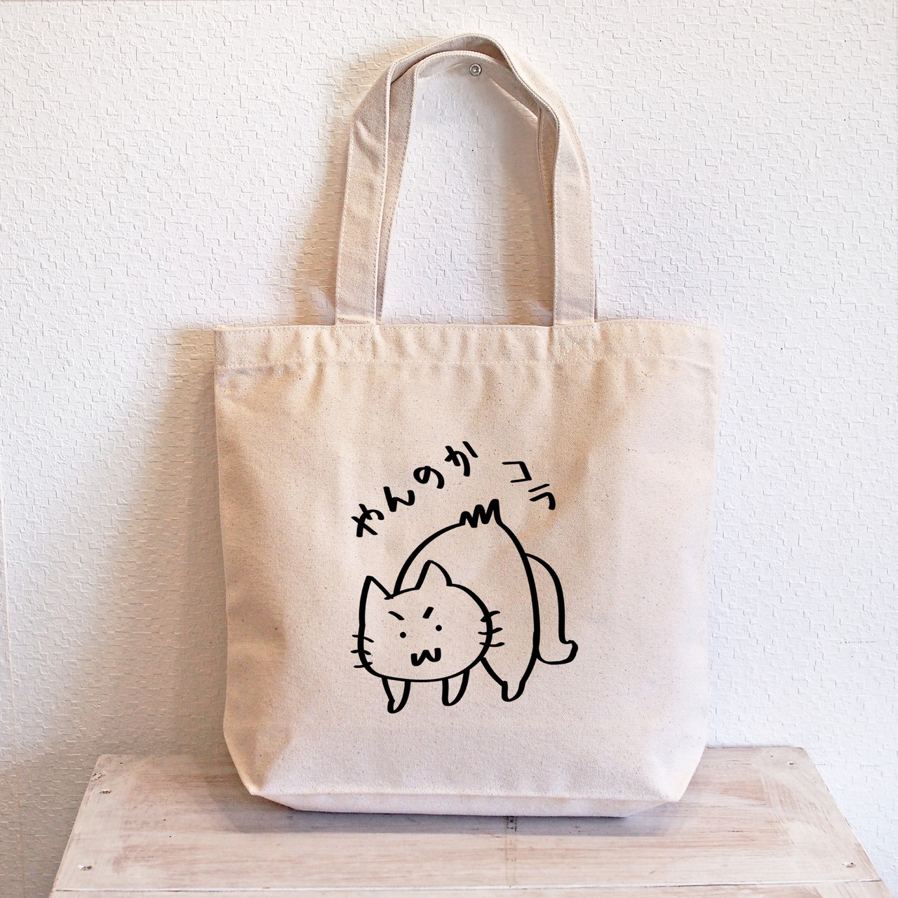 猫トートバッグA4帆布 トートバック 怒りんぼ猫 大きめバッグですもに