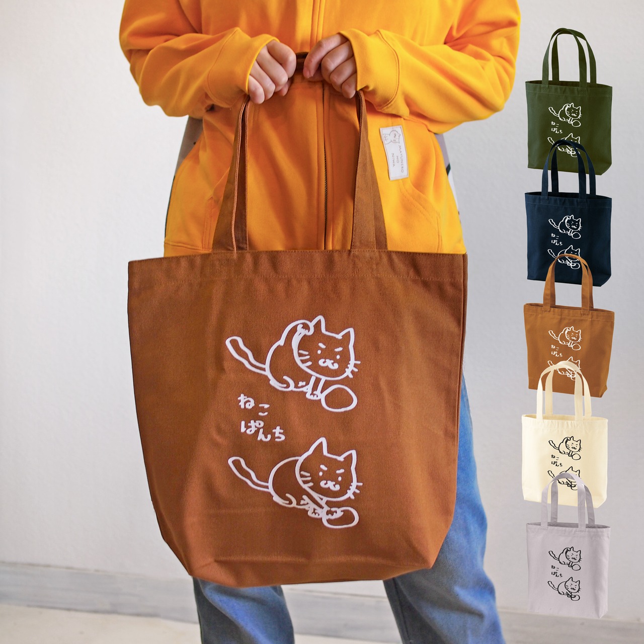 猫トートバッグA4帆布 トートバック ねこぱんち 大きめバッグですもに