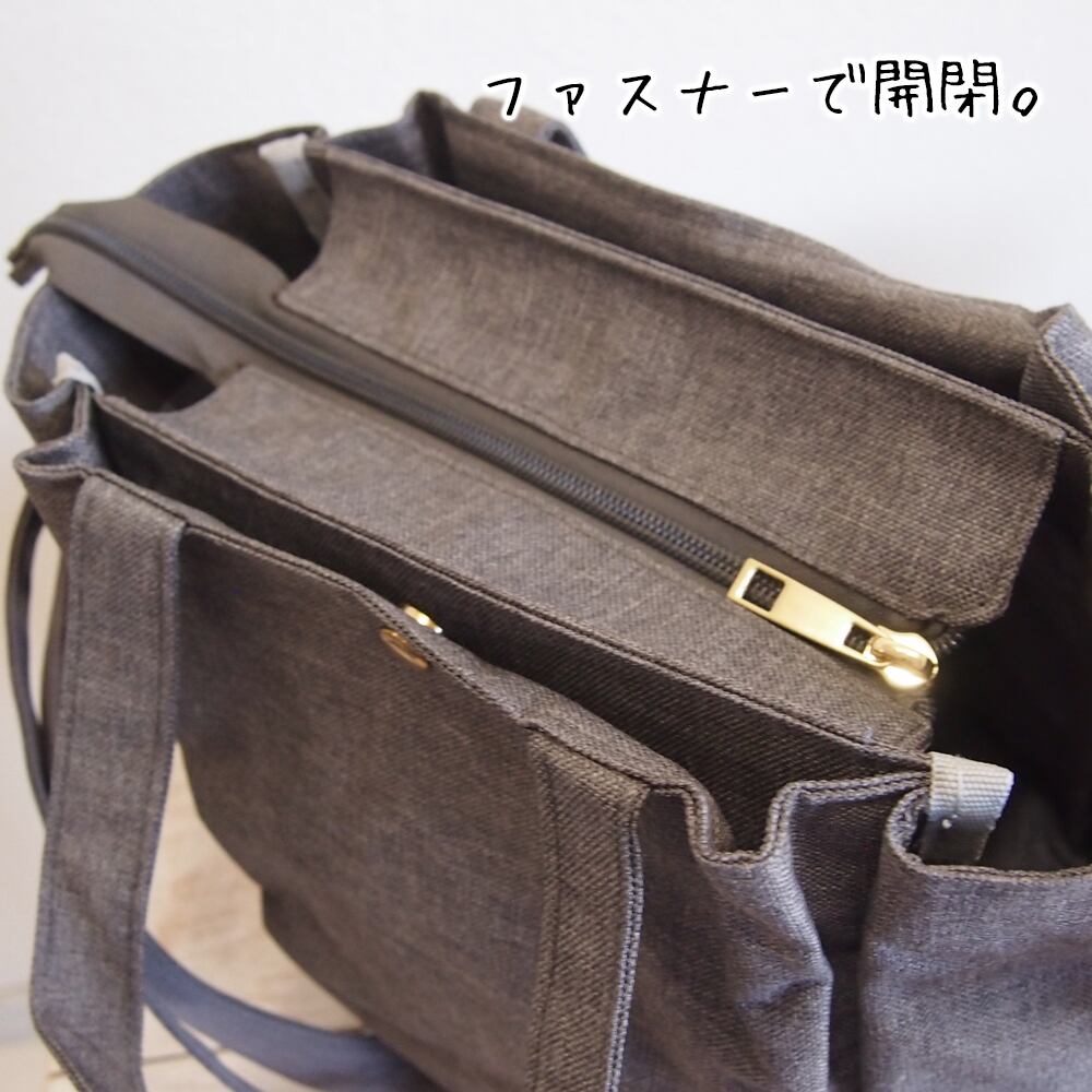 猫柄2wayバッグ グレー ポケット ファスナー付