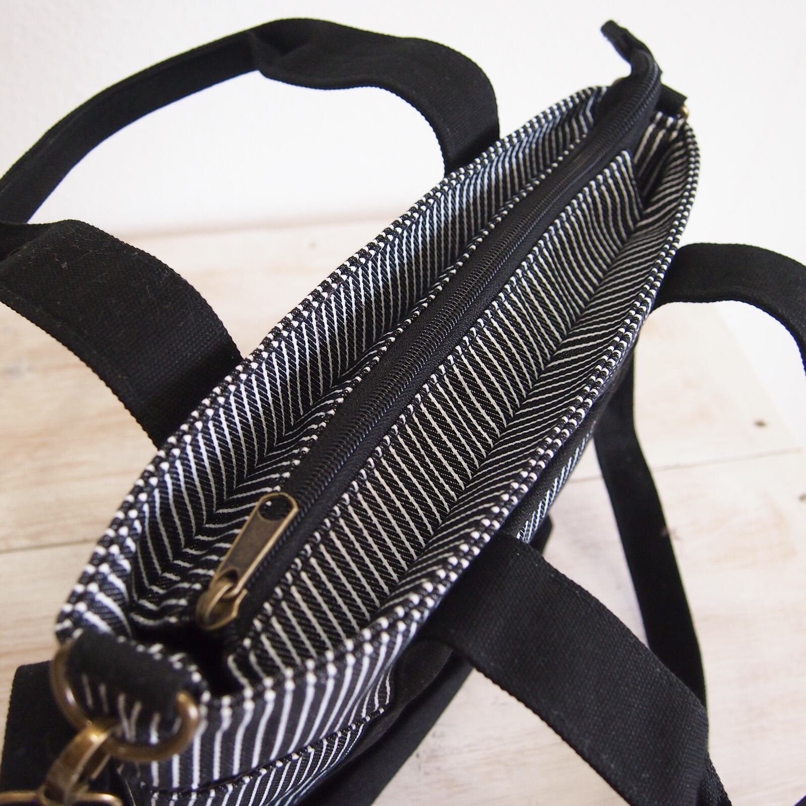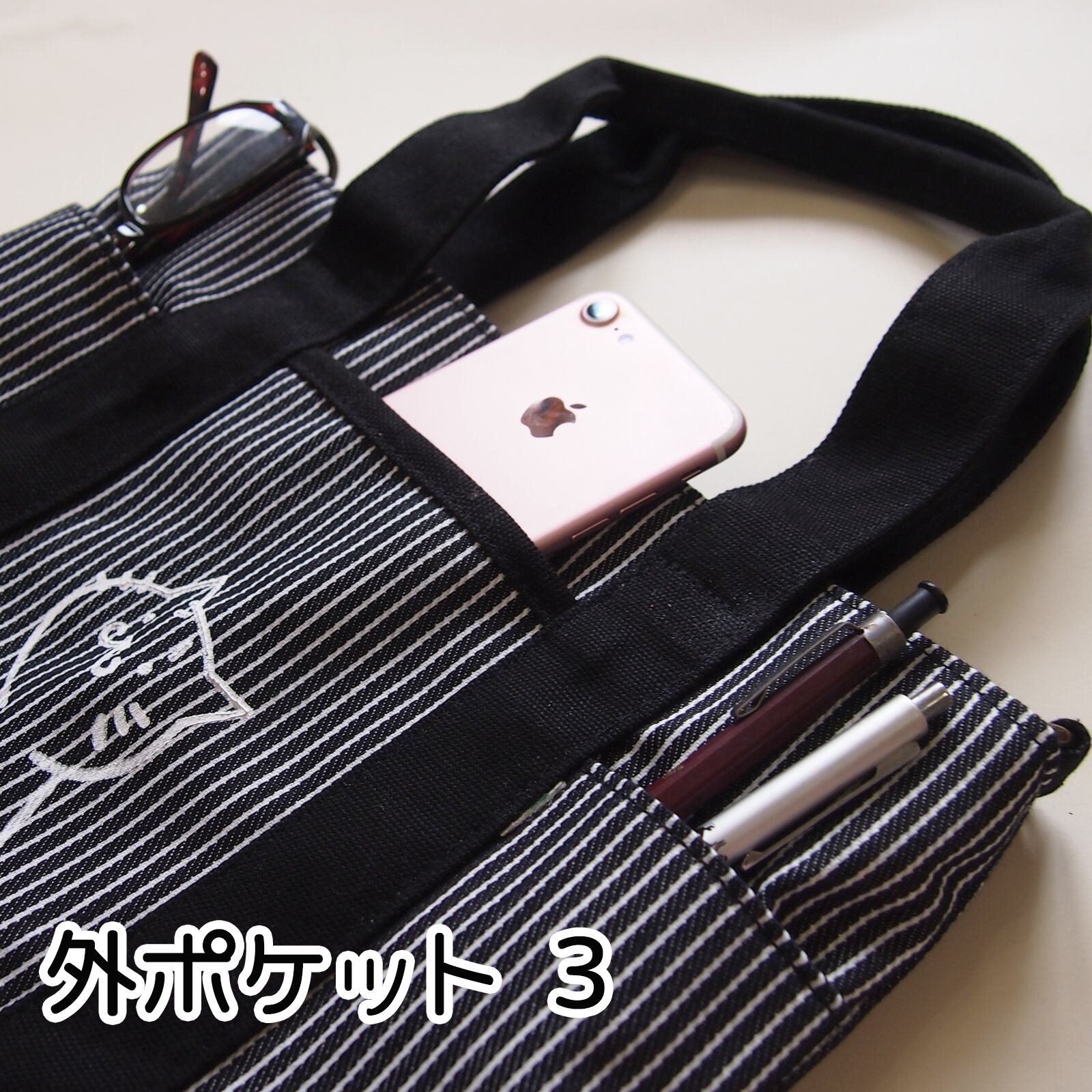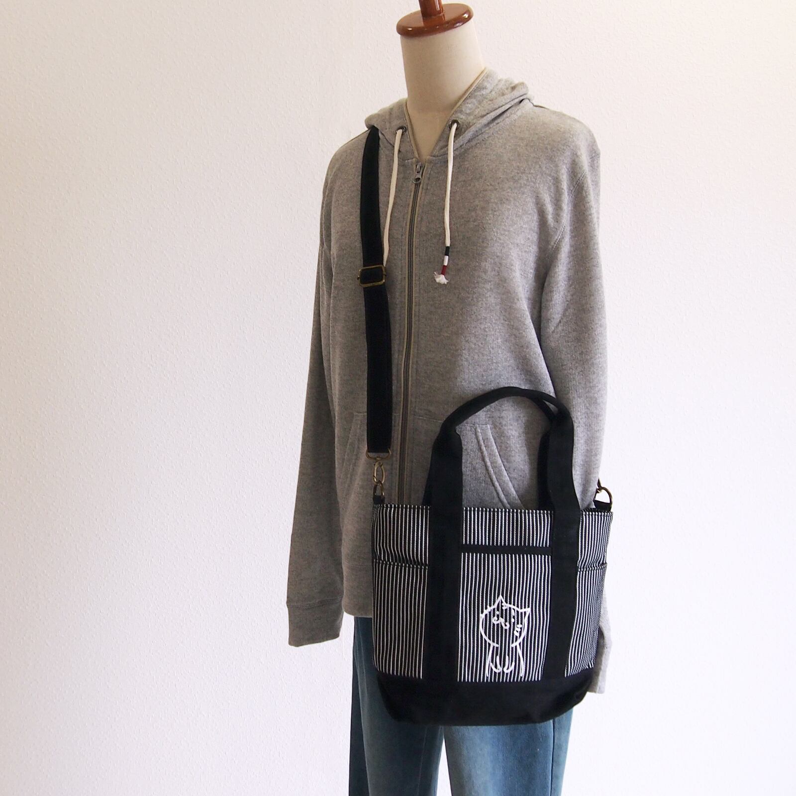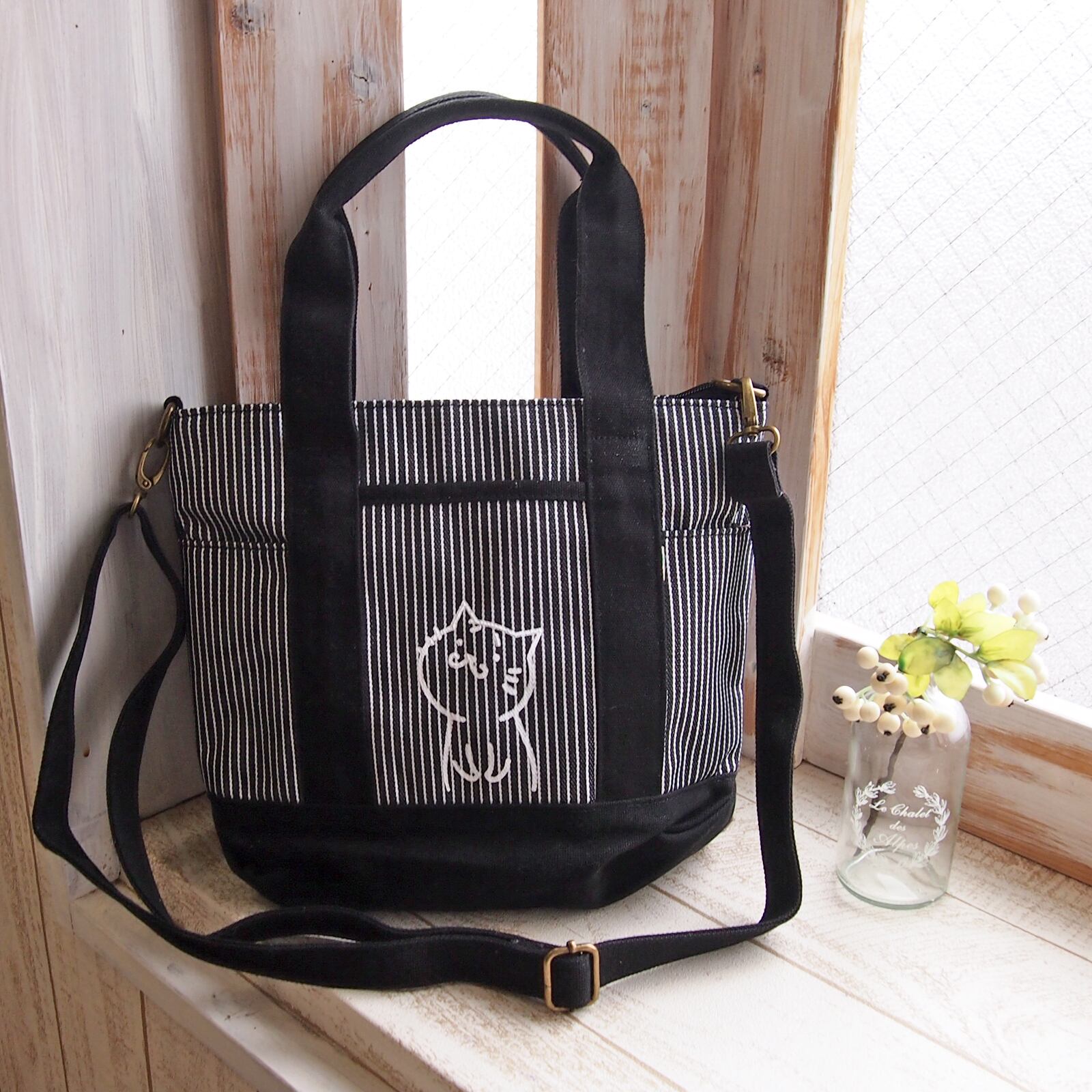 A4トートバッグ猫S 差し色 ヒッコリーブラック 2WAY ショルダー
