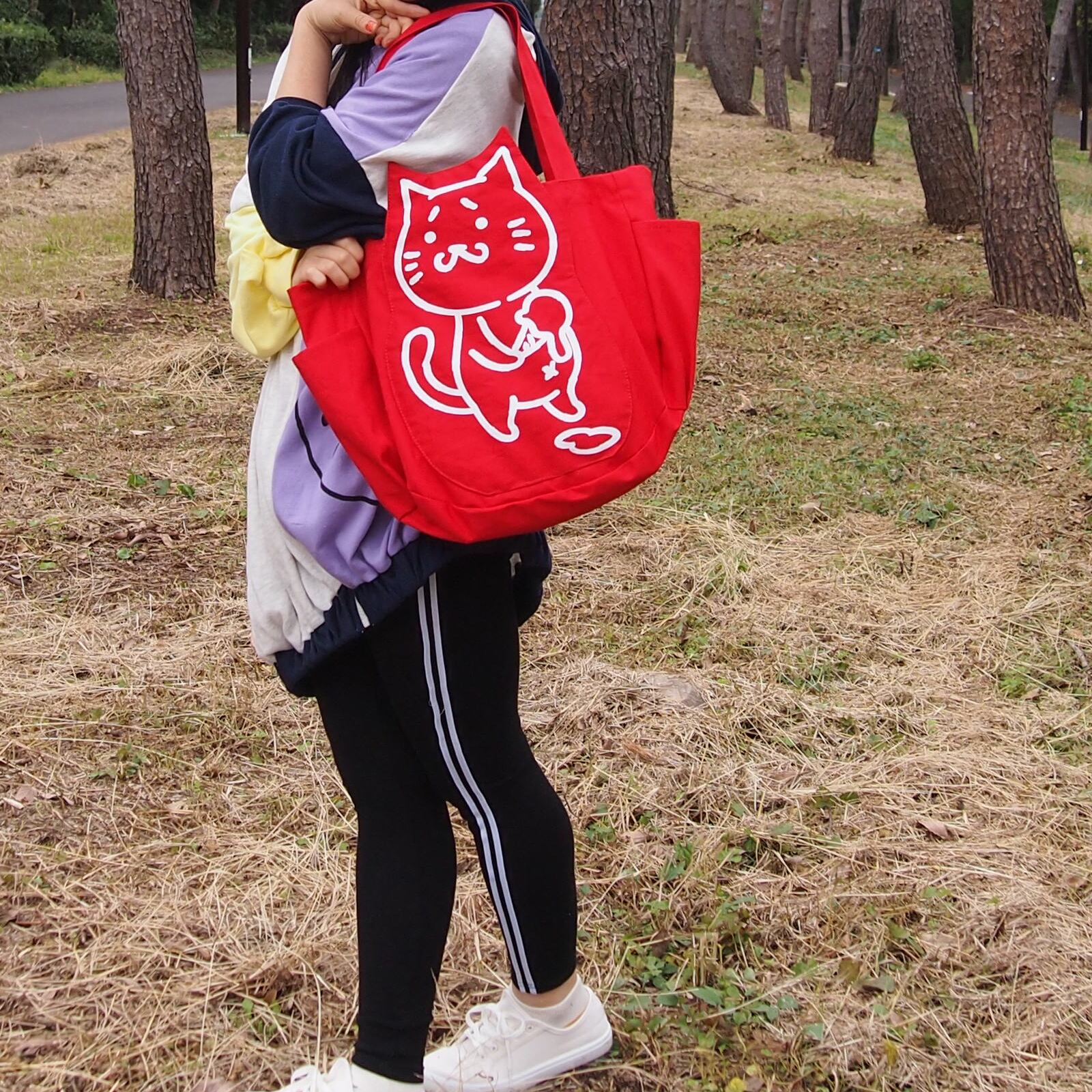 SALE 猫トートバッグ A4帆布 エコバッグ 差し色 Cat Tote Bag 赤