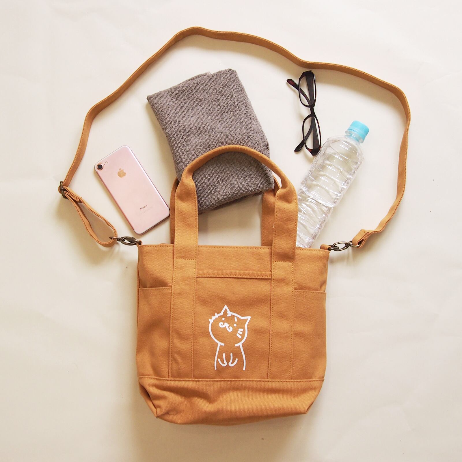 A4トートバッグ猫S 差し色 マスタードイエロー 2WAY ショルダー