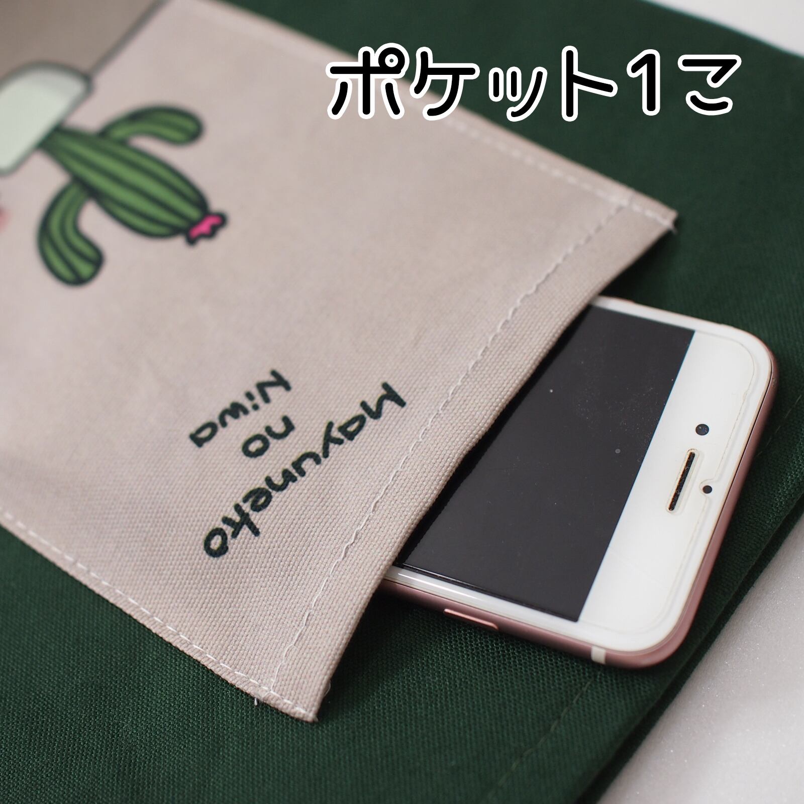 ■ まゆねことサボテンイラストをポケットにしました。ポケット1個になっています。