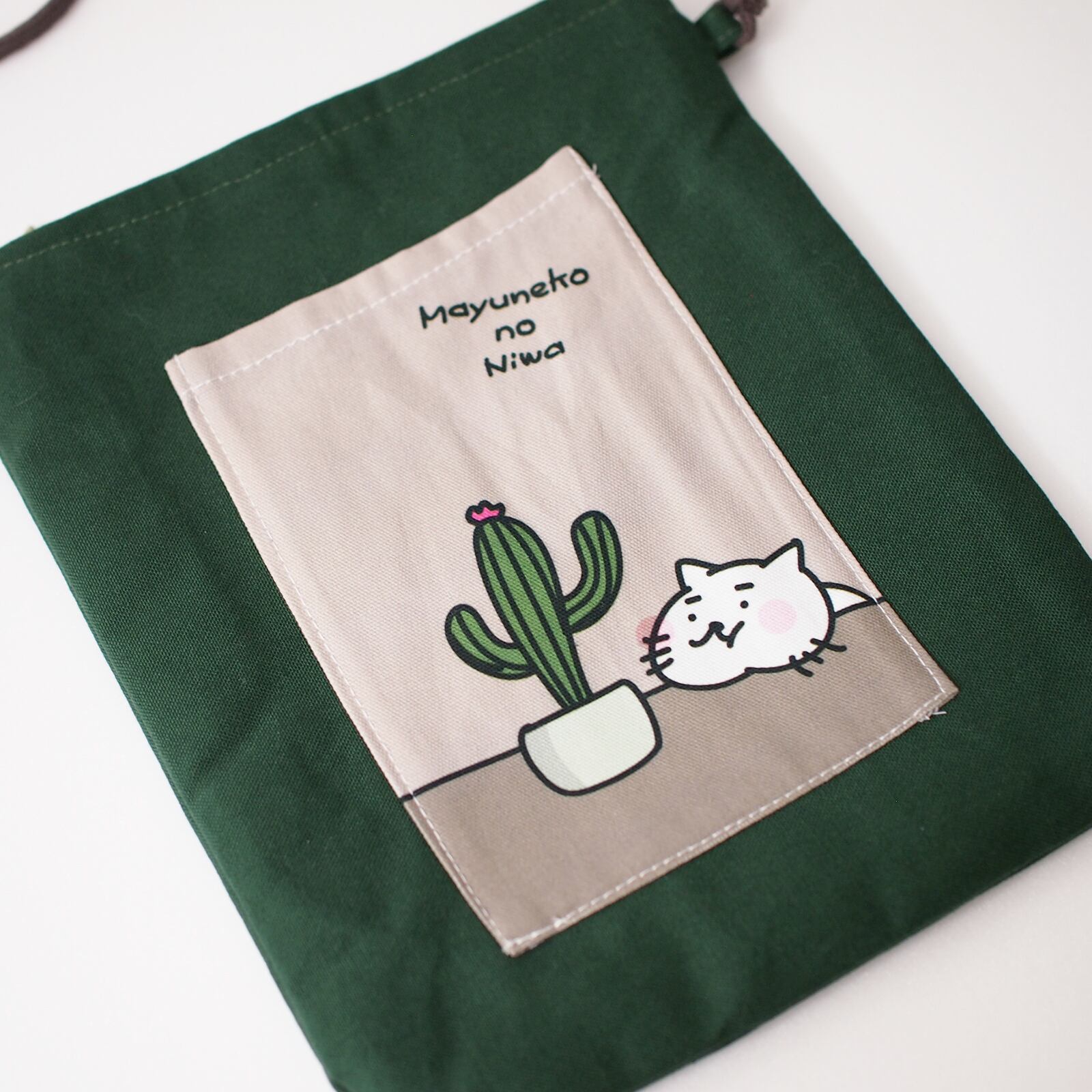サボテンと猫 サコッシュ グリーン ポケット1個 ですもに