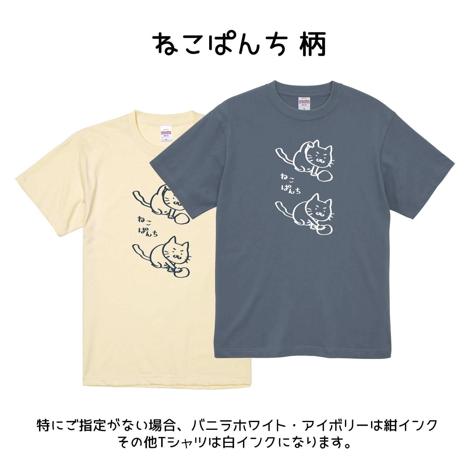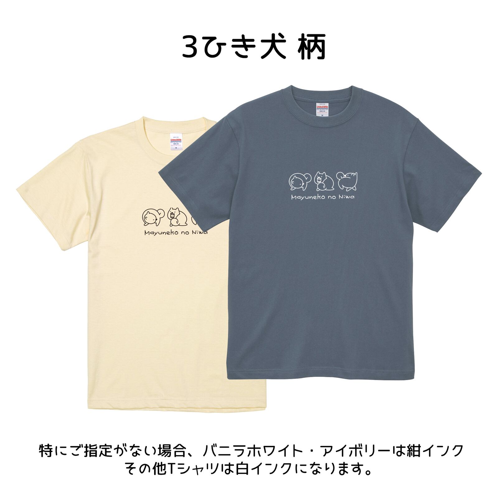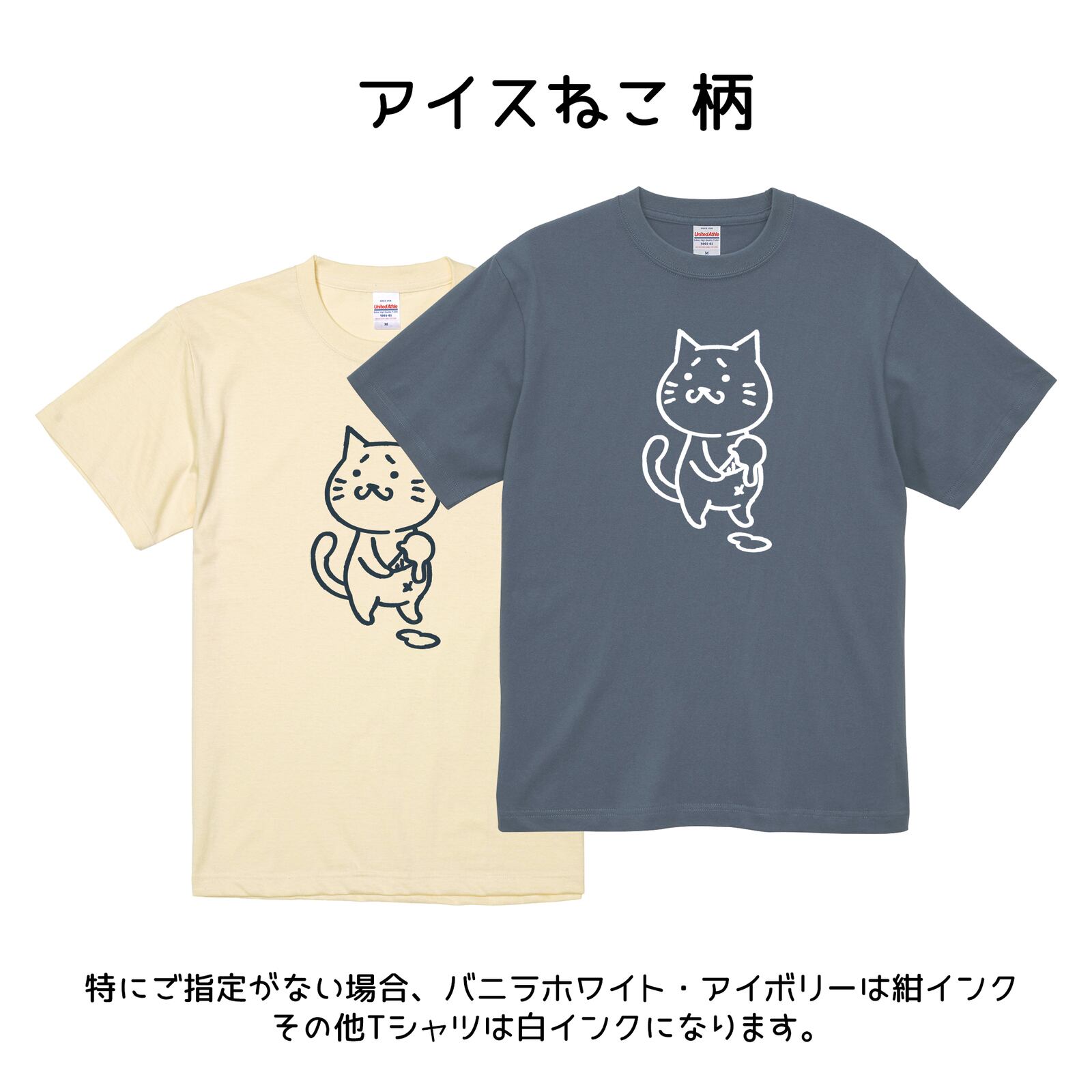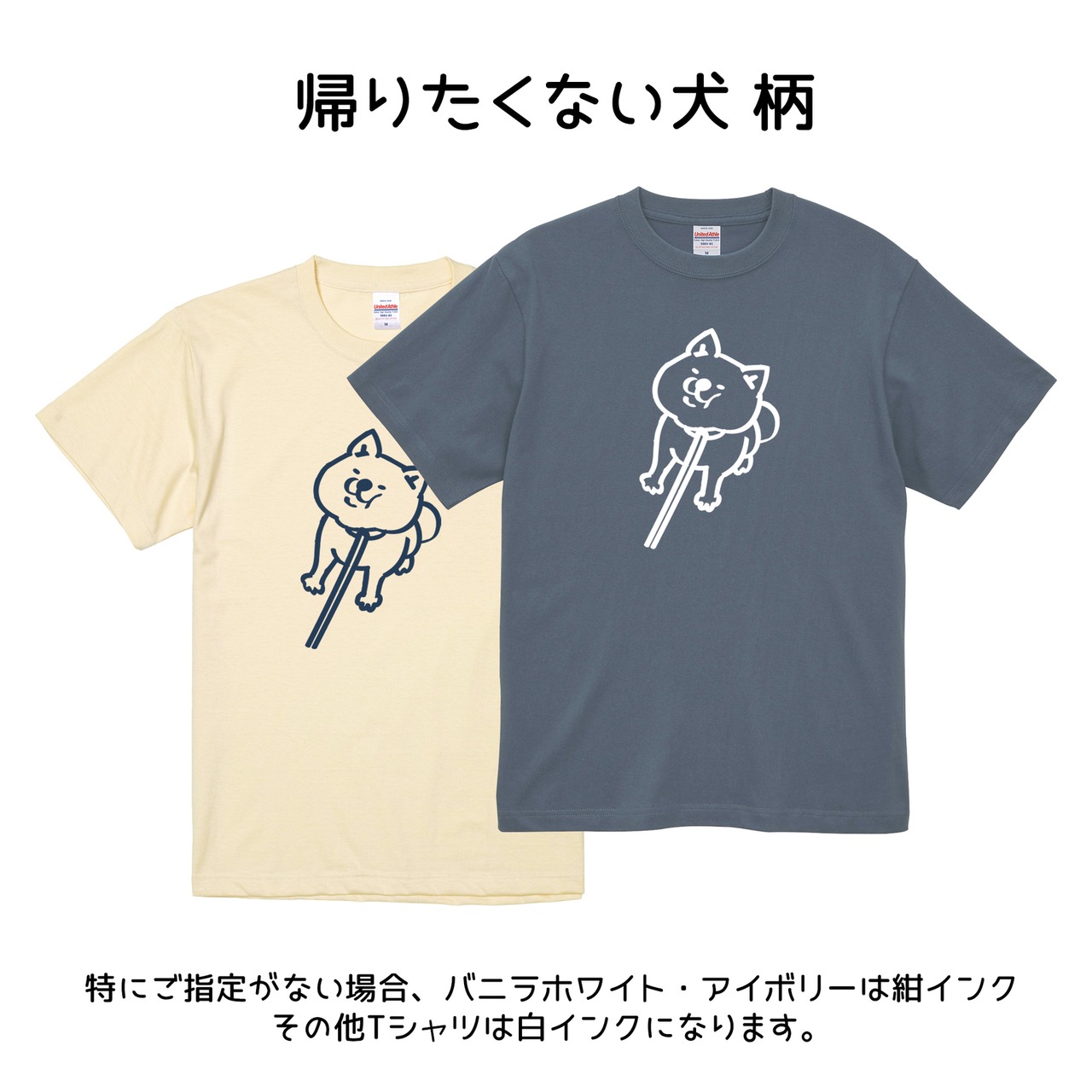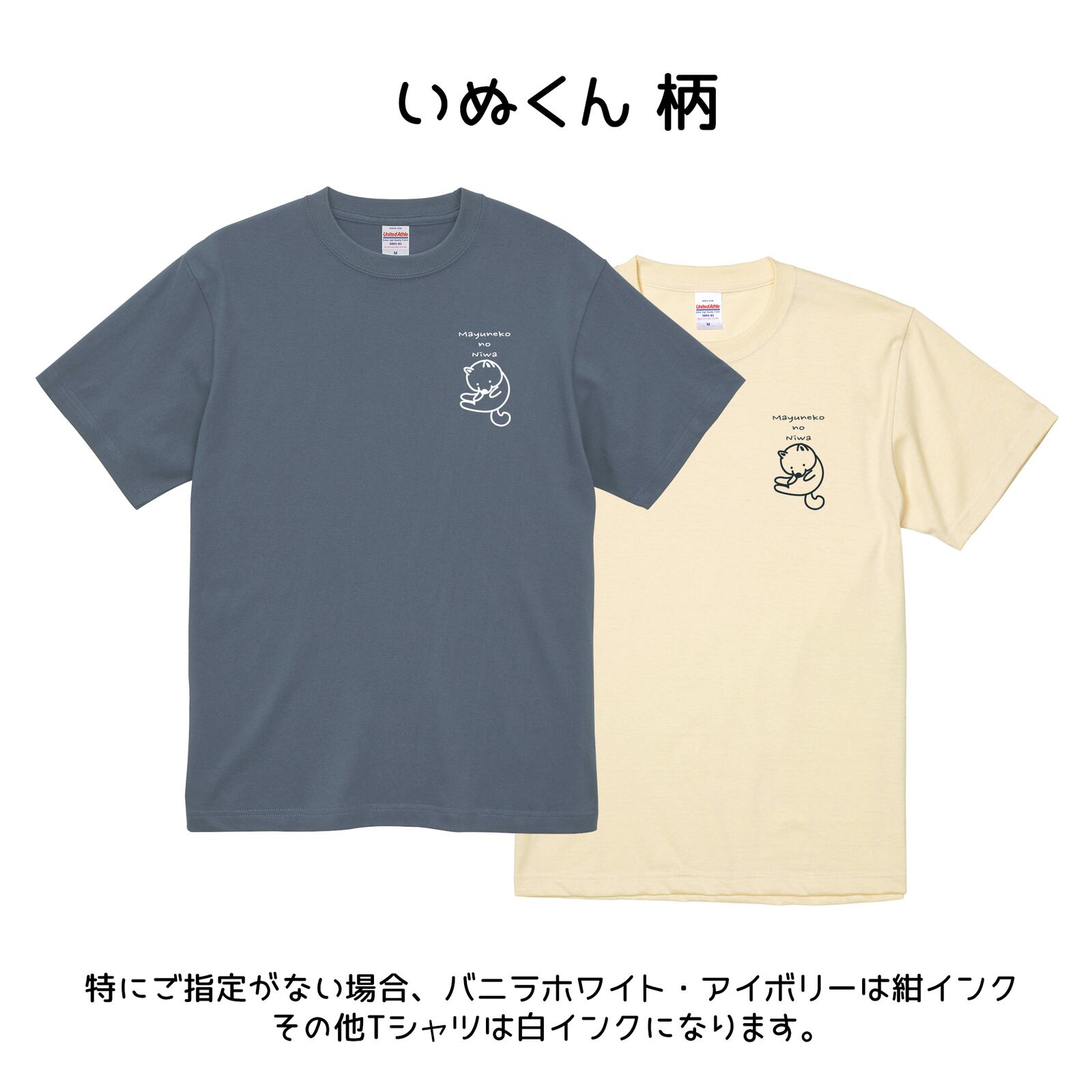 柄の色は白か紺(Tシャツ本体の色により変わります。当店にお任せいただきますがご希望がある場合は備考欄にご記入ください)