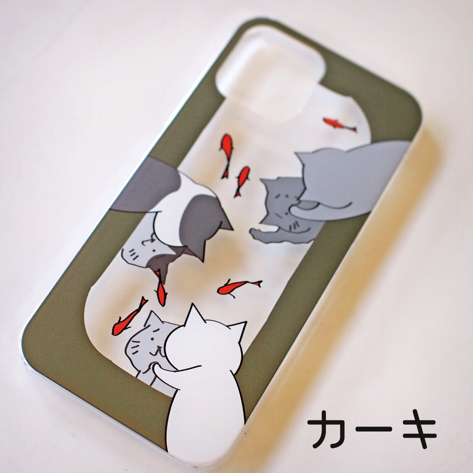 池の金魚をのぞく猫 Androidスマホケース ハード 透明 受注生産