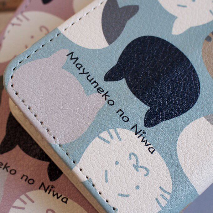 手帳型 スマホケース クリスマス まゆねこ 猫 かわいい プレゼント 三毛猫 キジトラ ハチワレ dog ブルー ピンク ブラウン