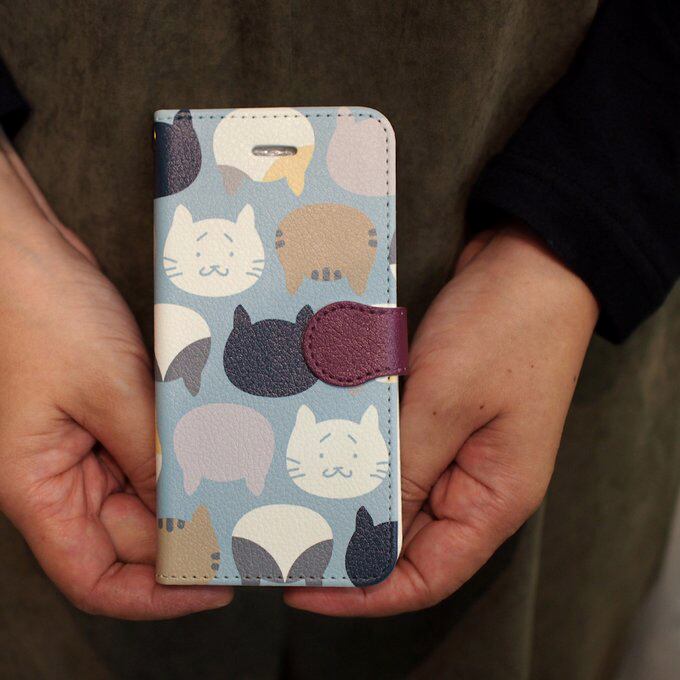 北欧風 猫いっぱい柄 手帳型スマホケース Android ですもに