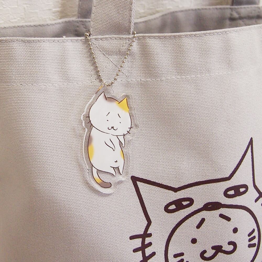 猫キーホルダー アクリル 三毛猫 まゆねこ ですもに