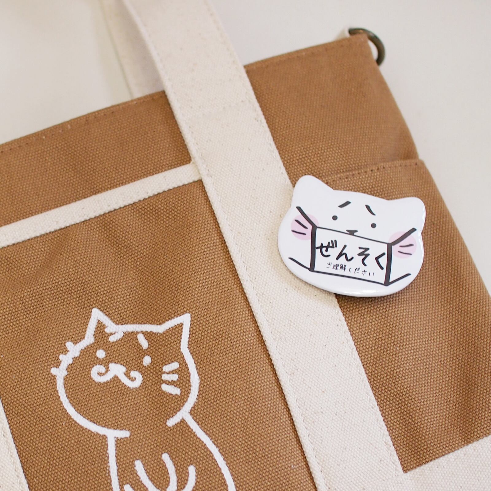 猫柄 花粉症/ぜんそくバッジ 缶バッチ 猫型ですもに
