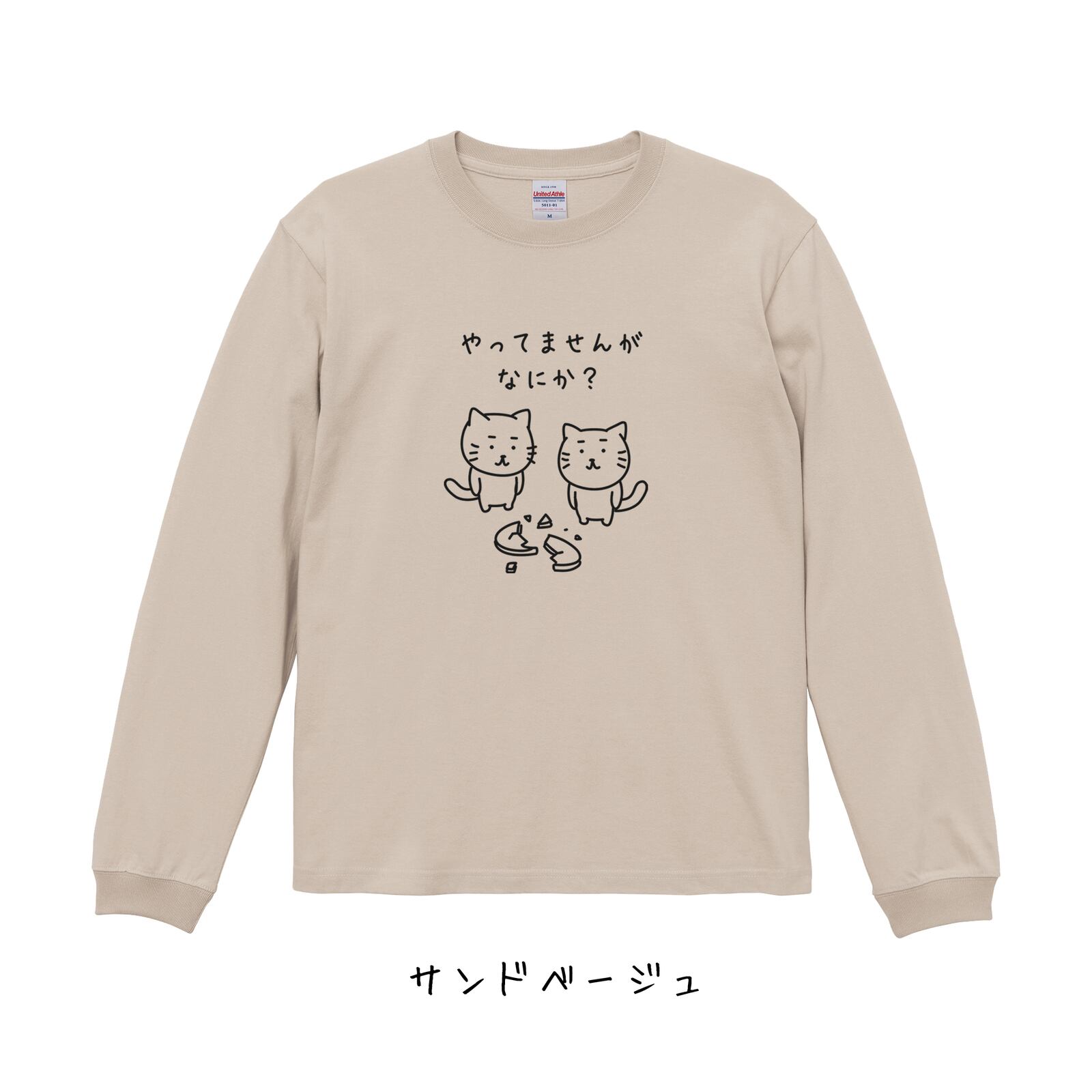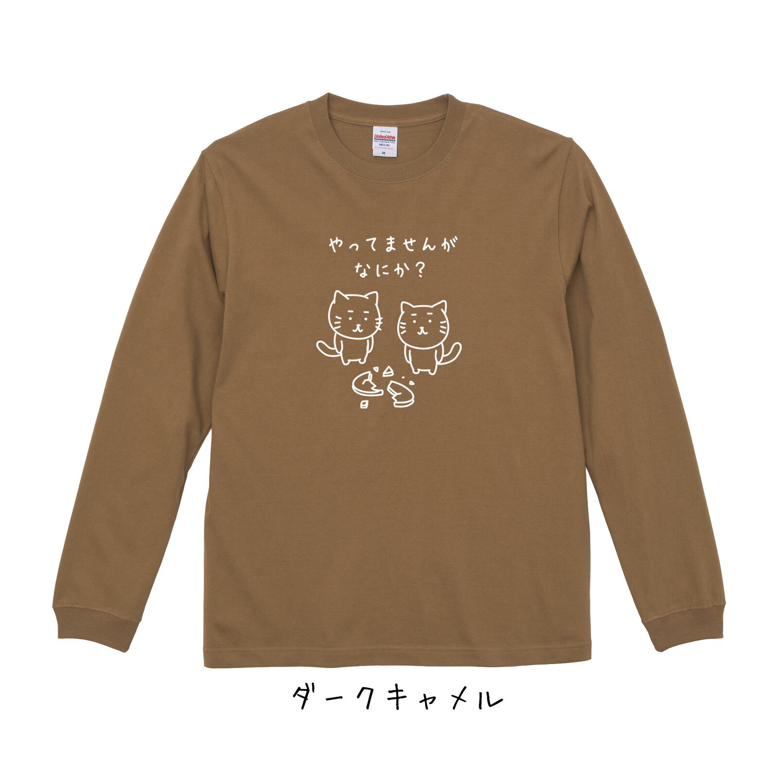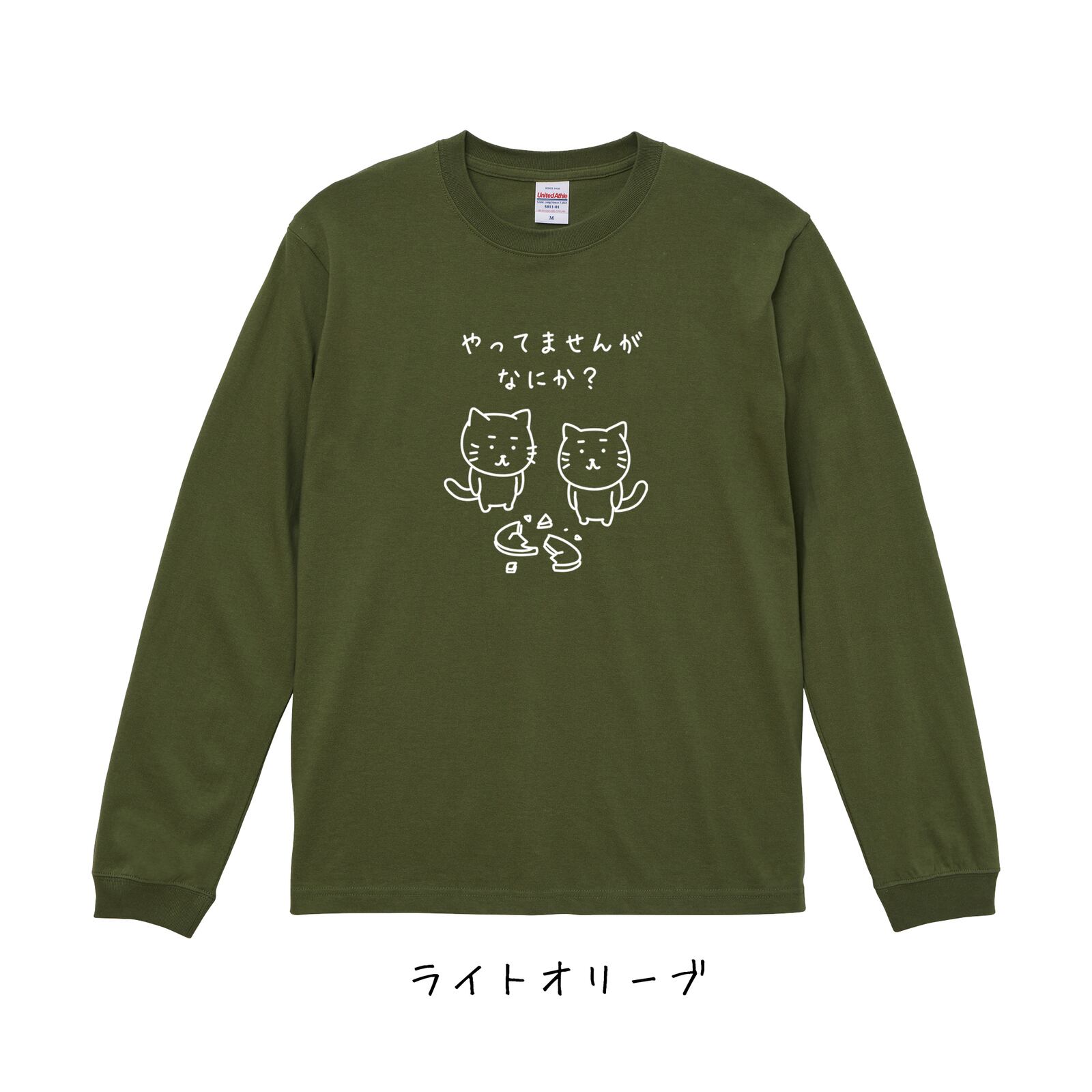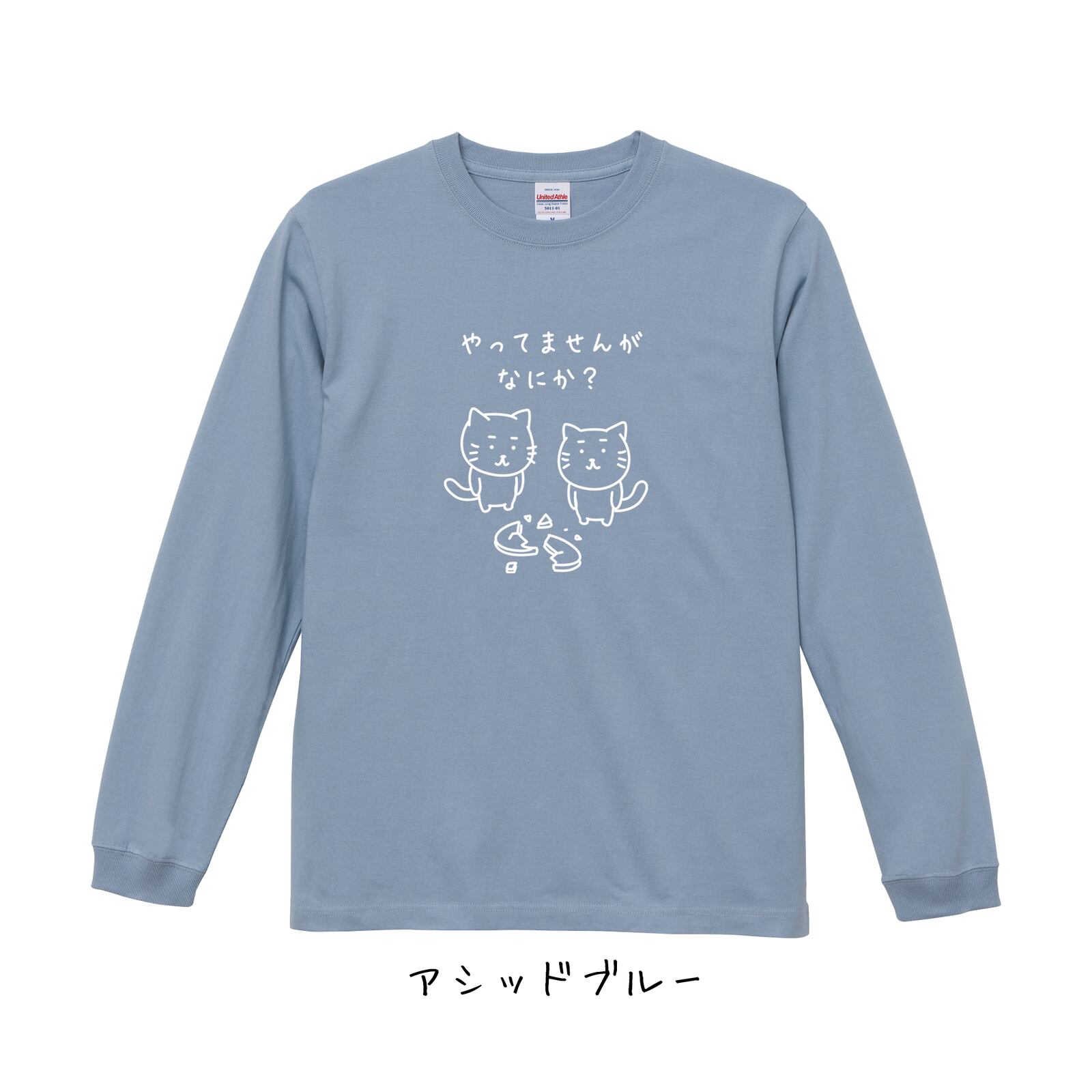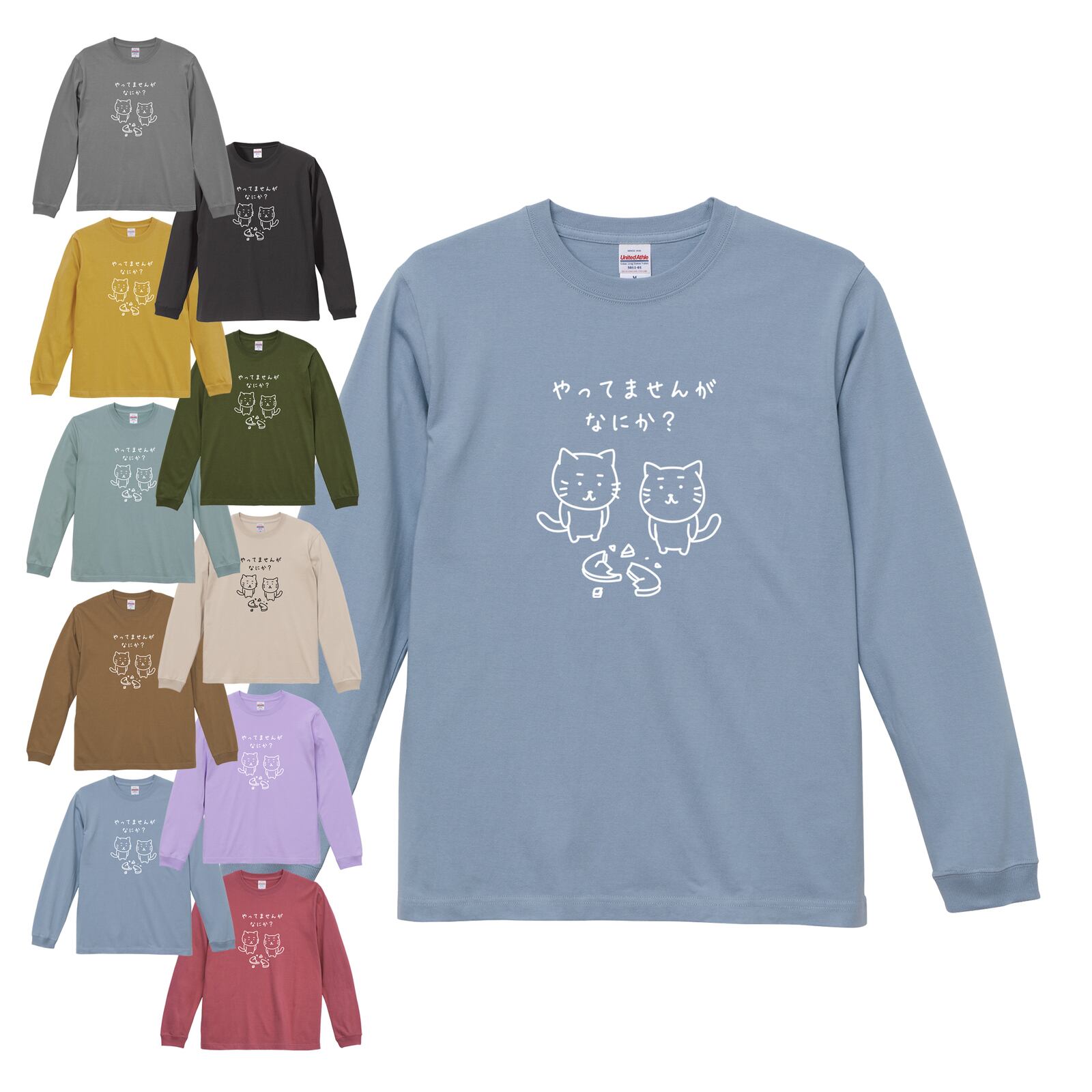 選べる10色!やってませんがなにか? 長袖Tシャツ 猫柄 受注生産