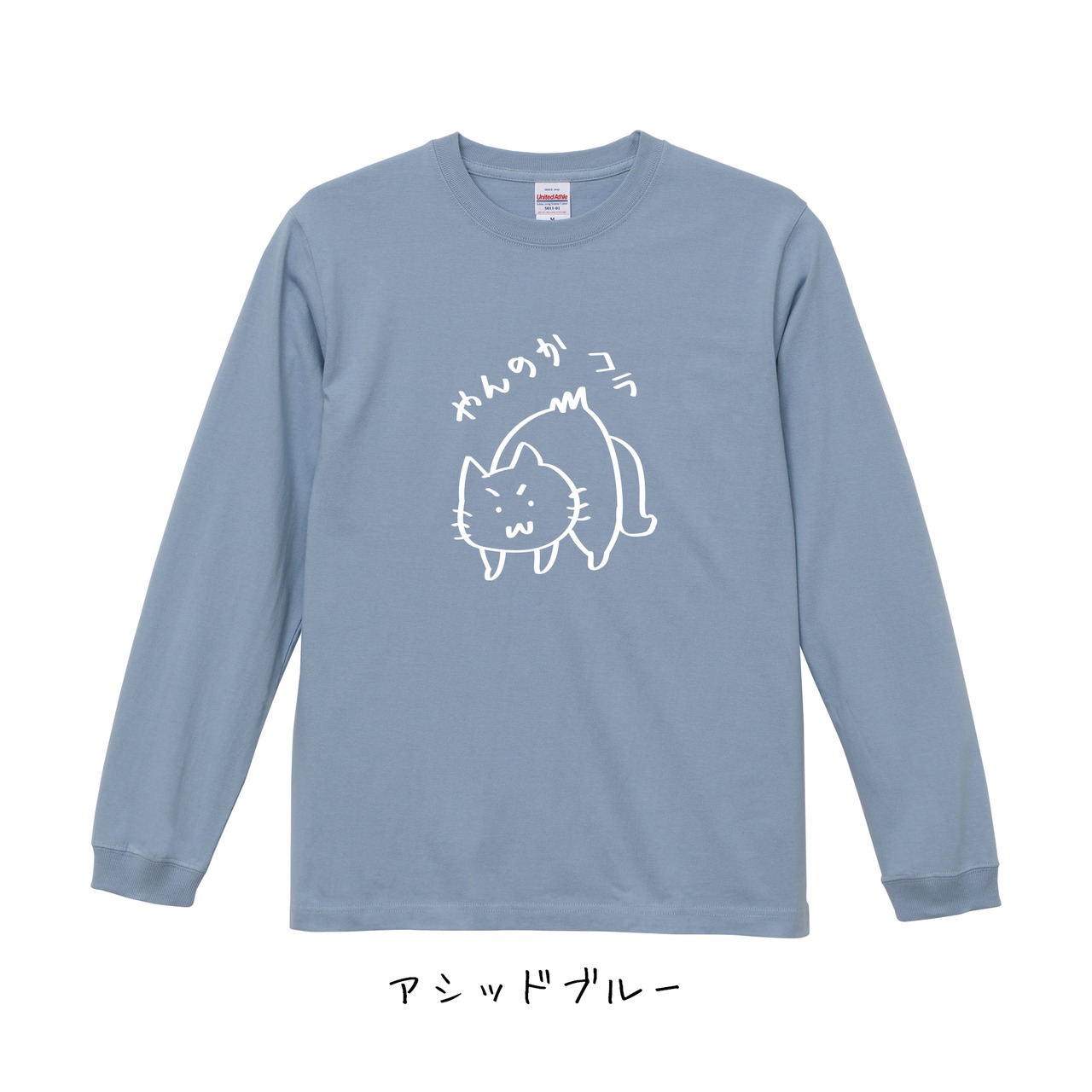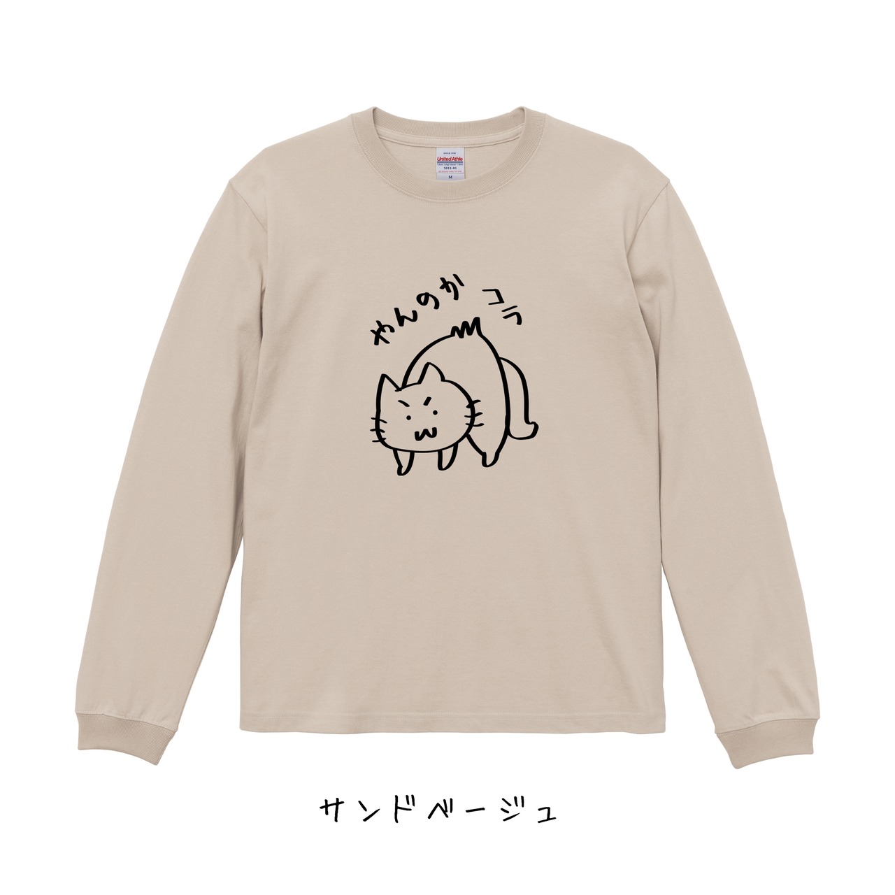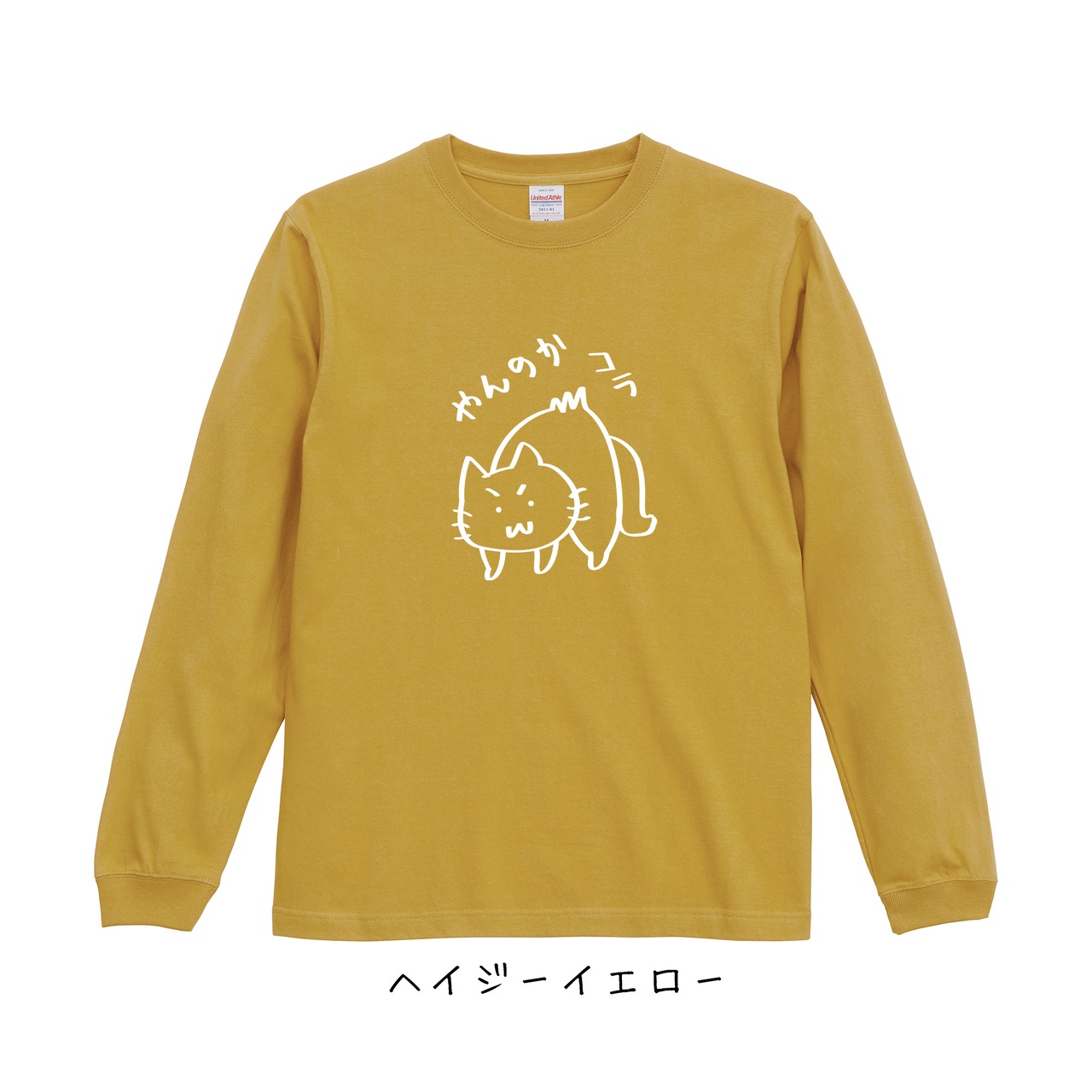 お好きなカラーとサイズの長袖Tシャツに、「おこりんぼ猫」柄をプリントするもによ