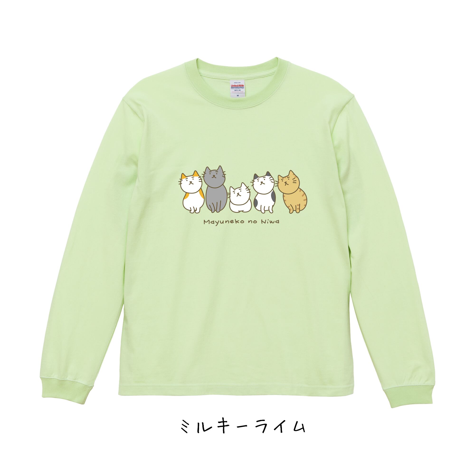 お好きなカラーとサイズの長袖Tシャツに、「ねこぱんち」柄をプリントするもによ