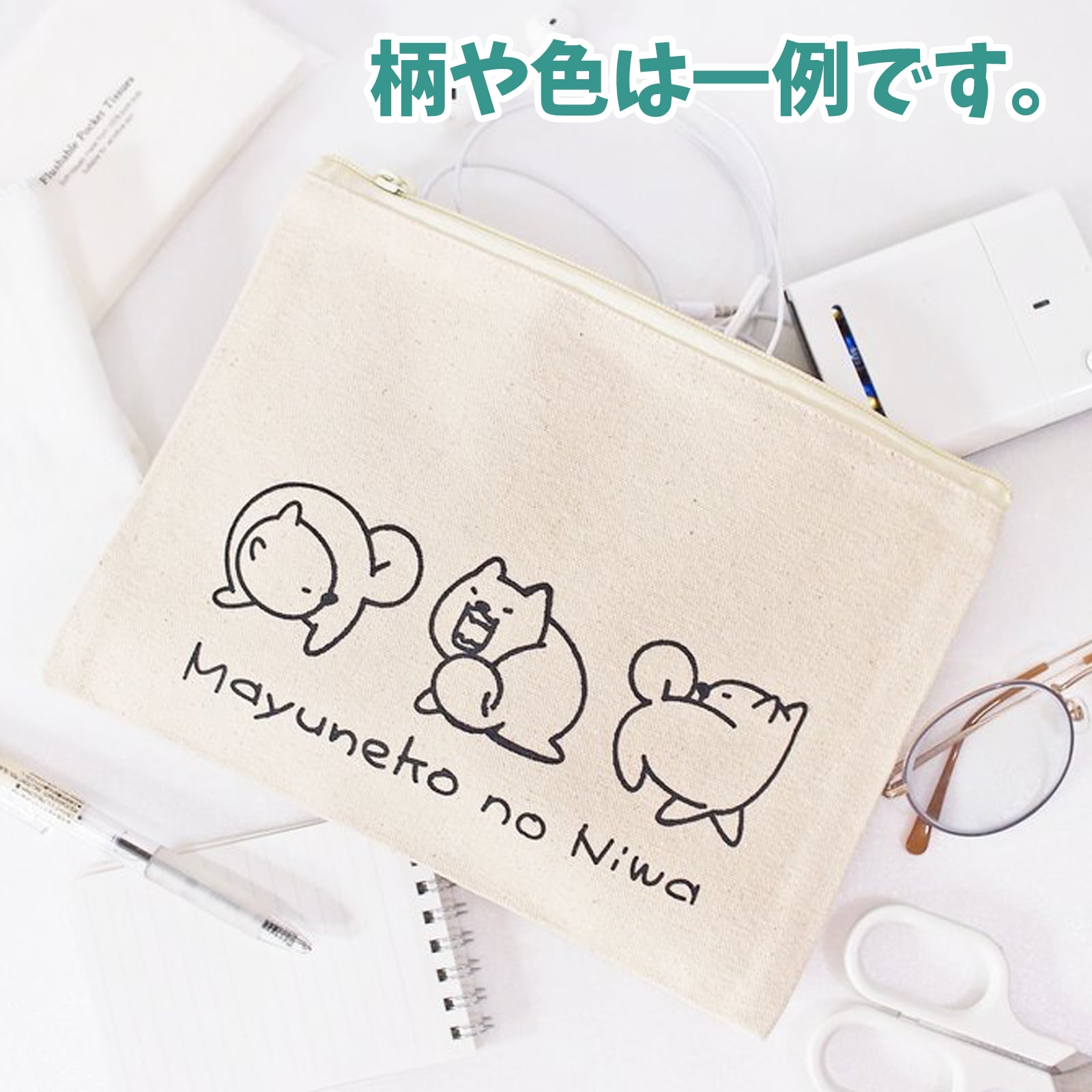■シンプル平ポーチ:ファスナー付。帆布生地厚さ12 oz、ナチュラル色しっかりめポーチです。