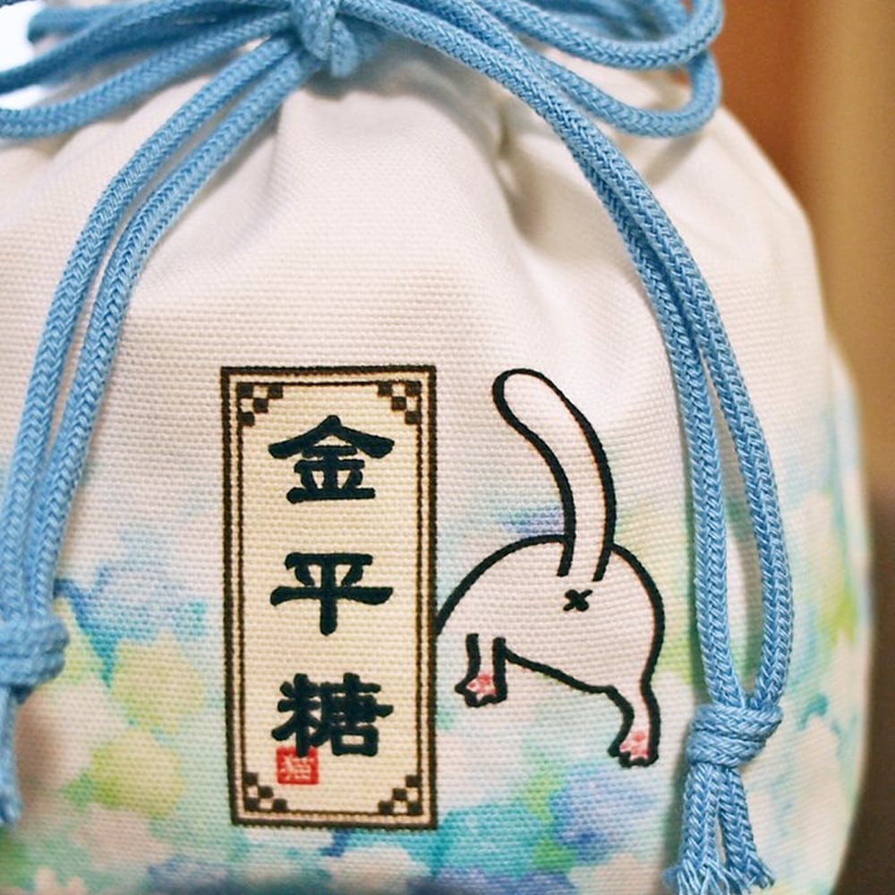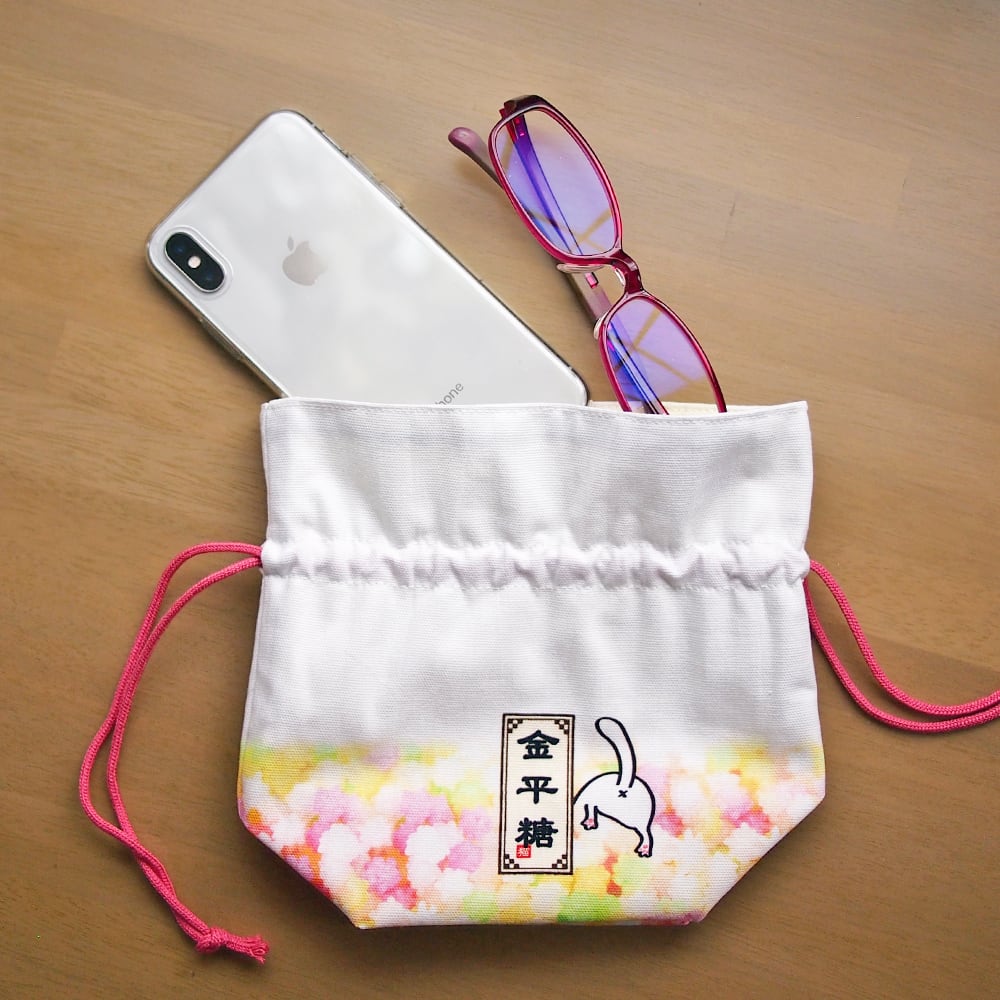 巾着 猫 バッグ ねこ 猫ポーチ 綿 金平糖 bag cat 化粧ポーチ 小物入れ 収納 コンパクト
