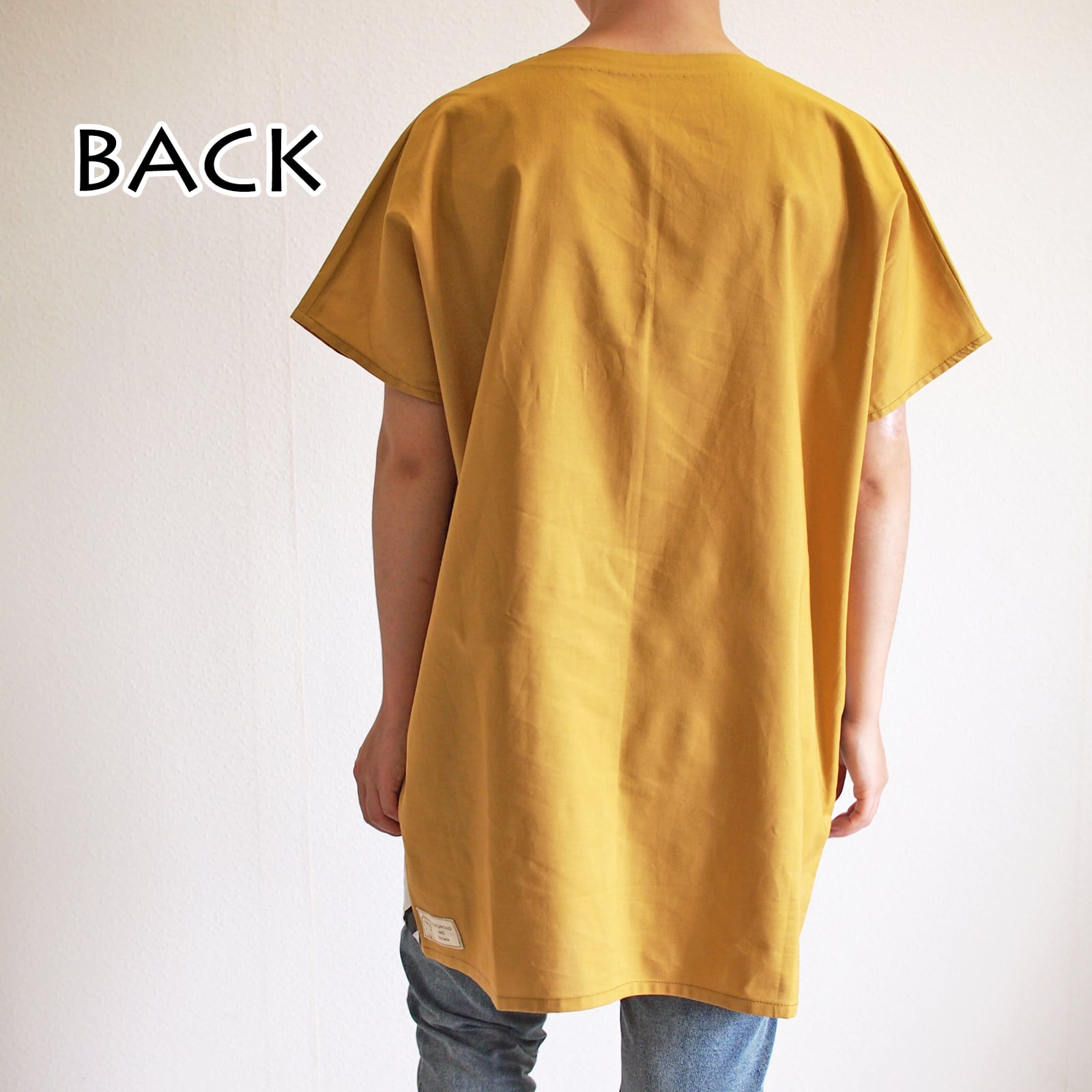 身幅たっぷりの脇からまっすぐ落ちた形です。スタッフLLサイズが着用で問題なく着られました。