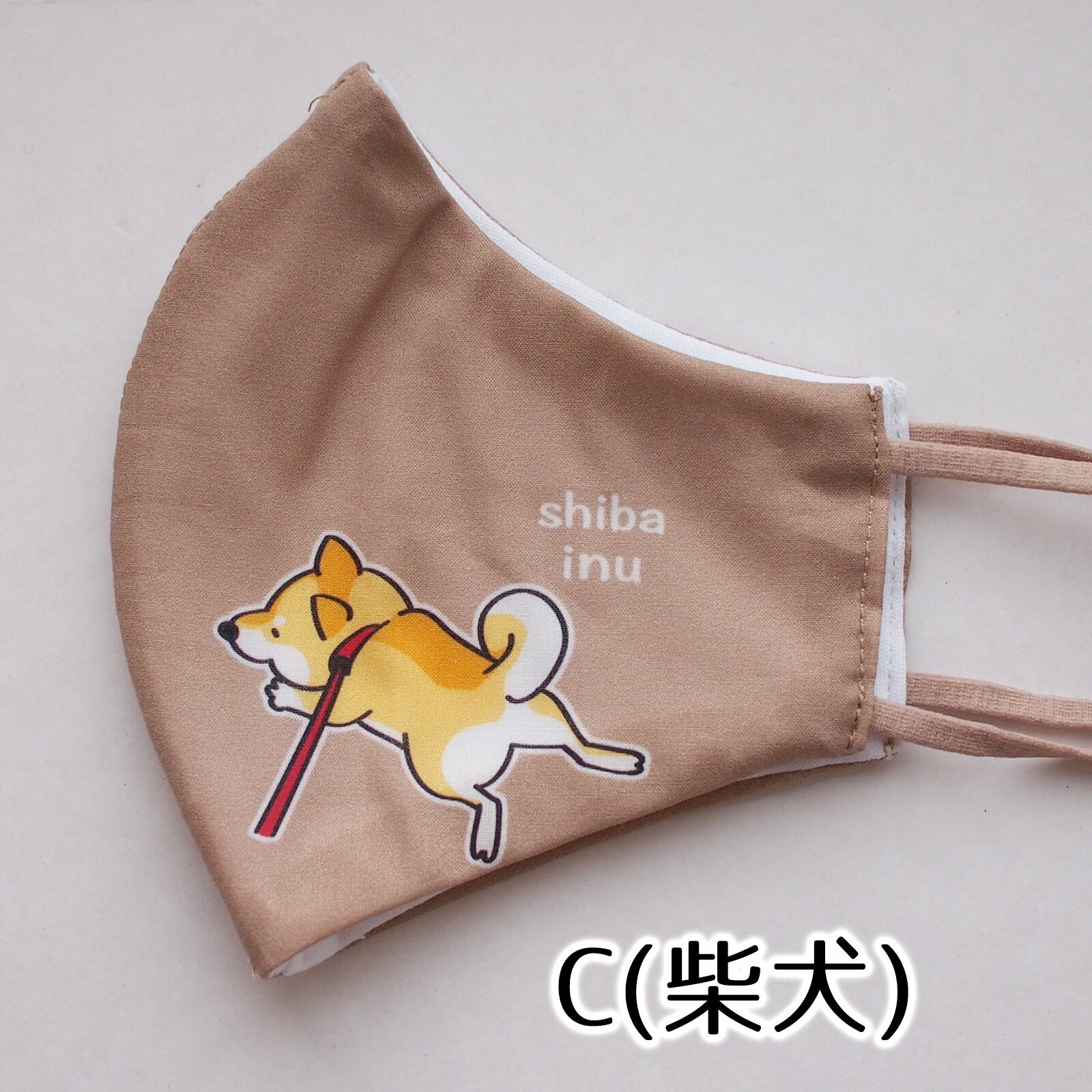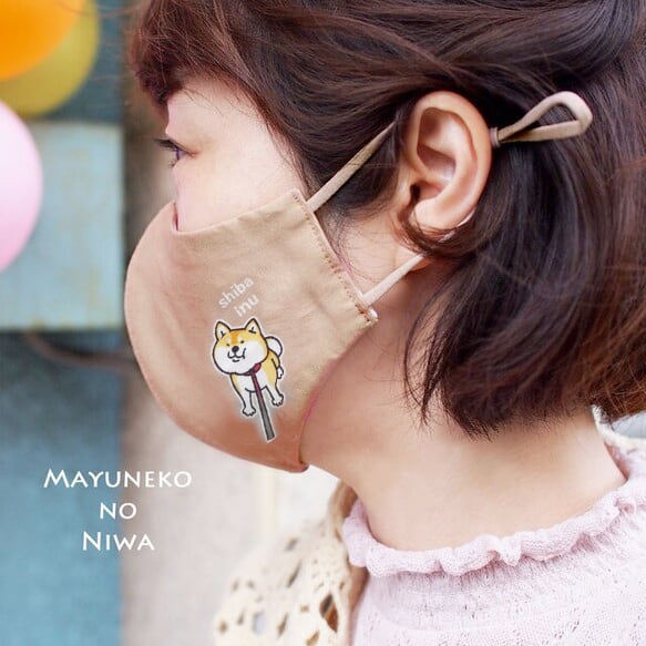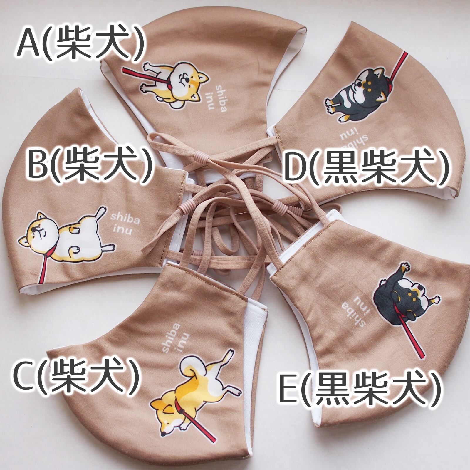 SALE 帰りたくない柴犬 黒柴犬マスク 茶色 布マスク