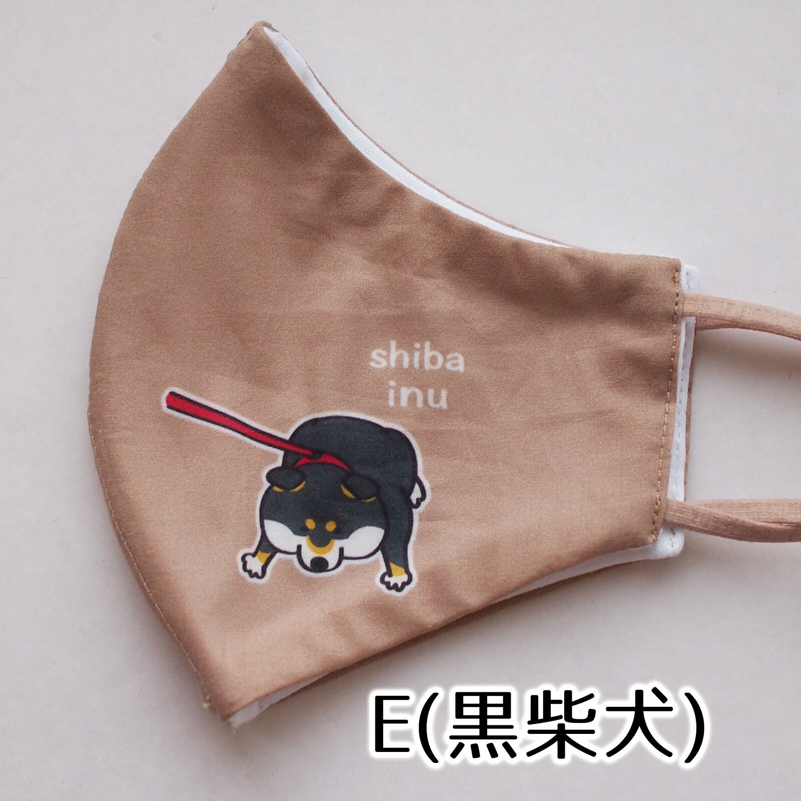 帰りたくない柴犬 黒柴犬マスク 茶色 布マスクもに