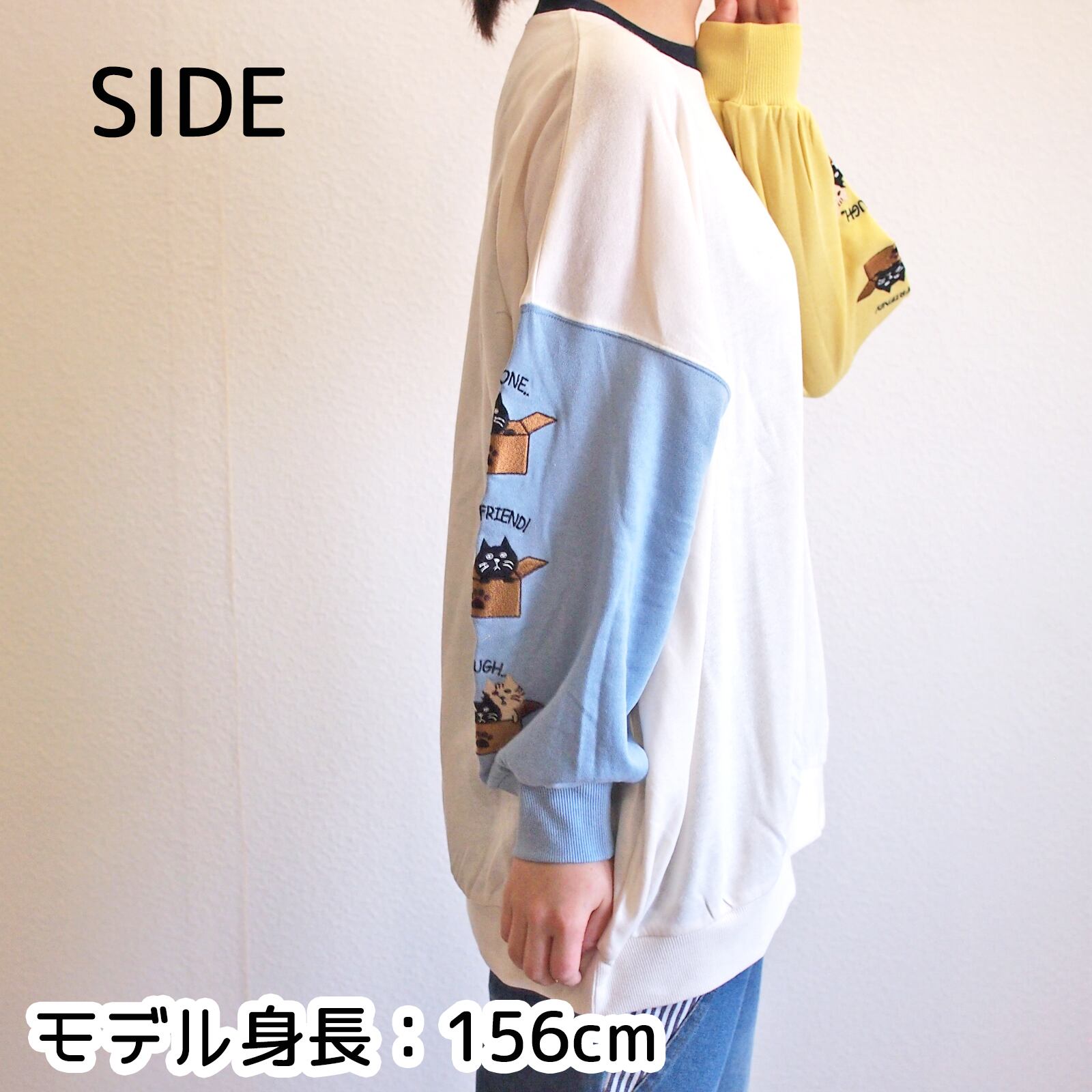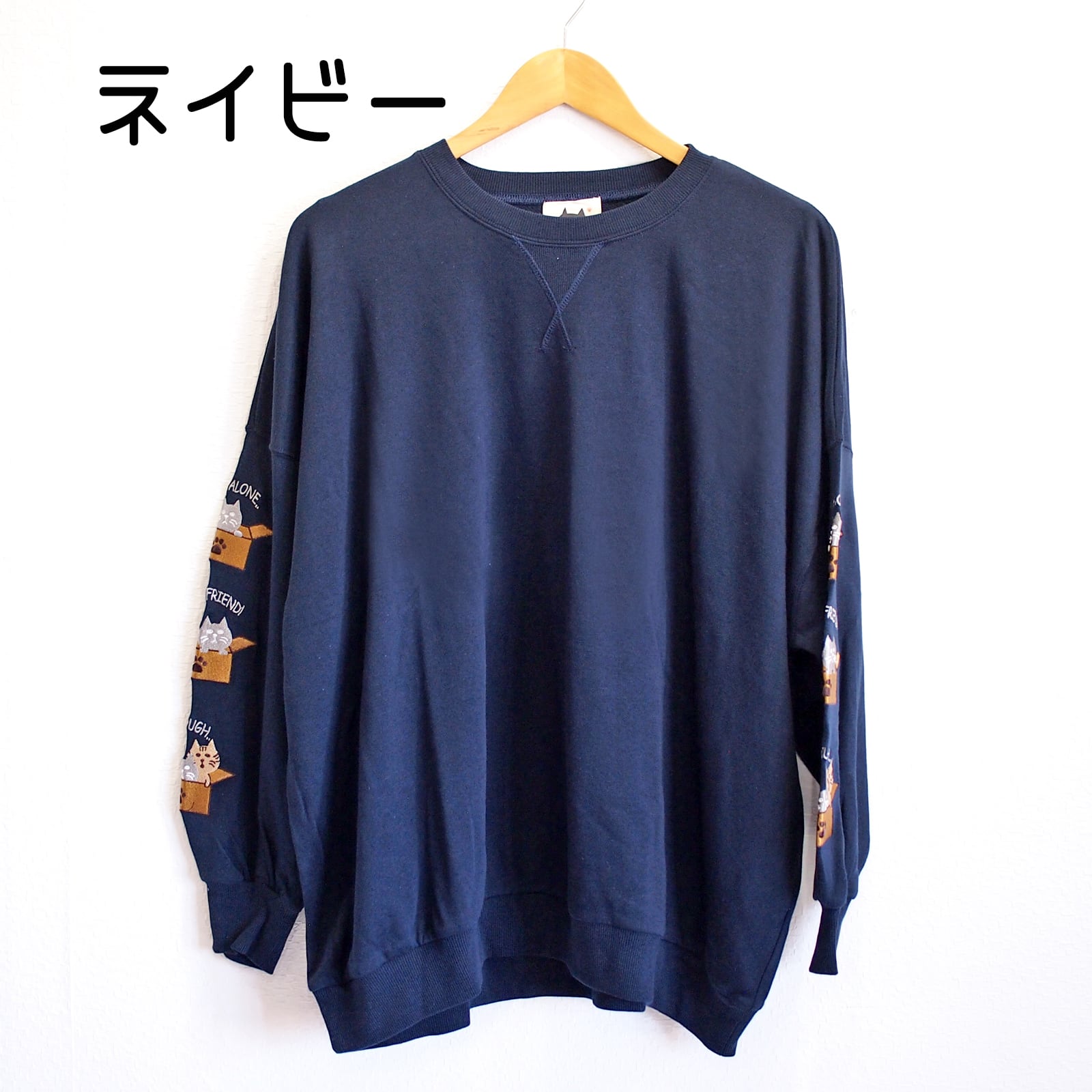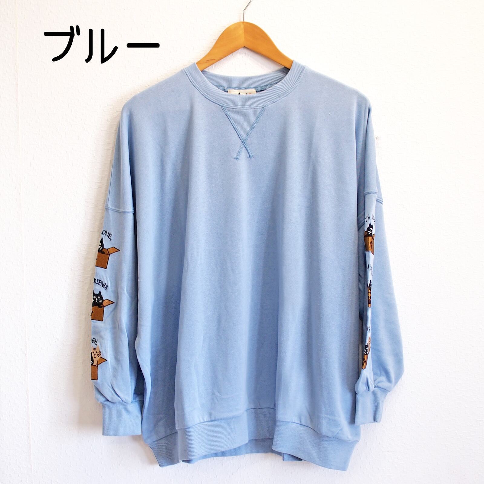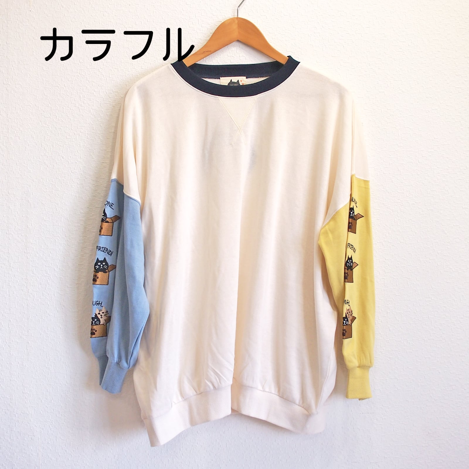 袖に箱の中のねこちゃんいっぱいトレーナー スウェット