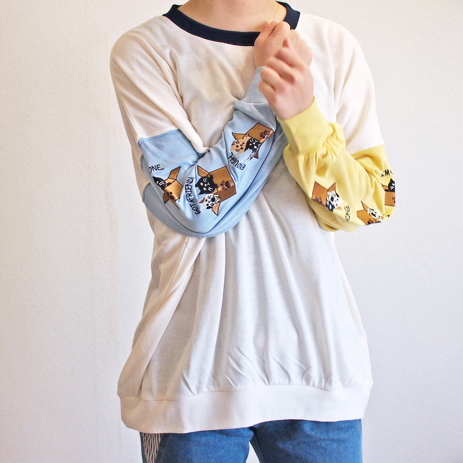 袖に箱の中のねこちゃんいっぱいトレーナー スウェット ですもに