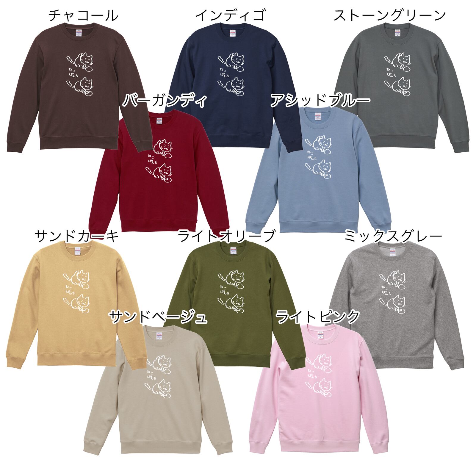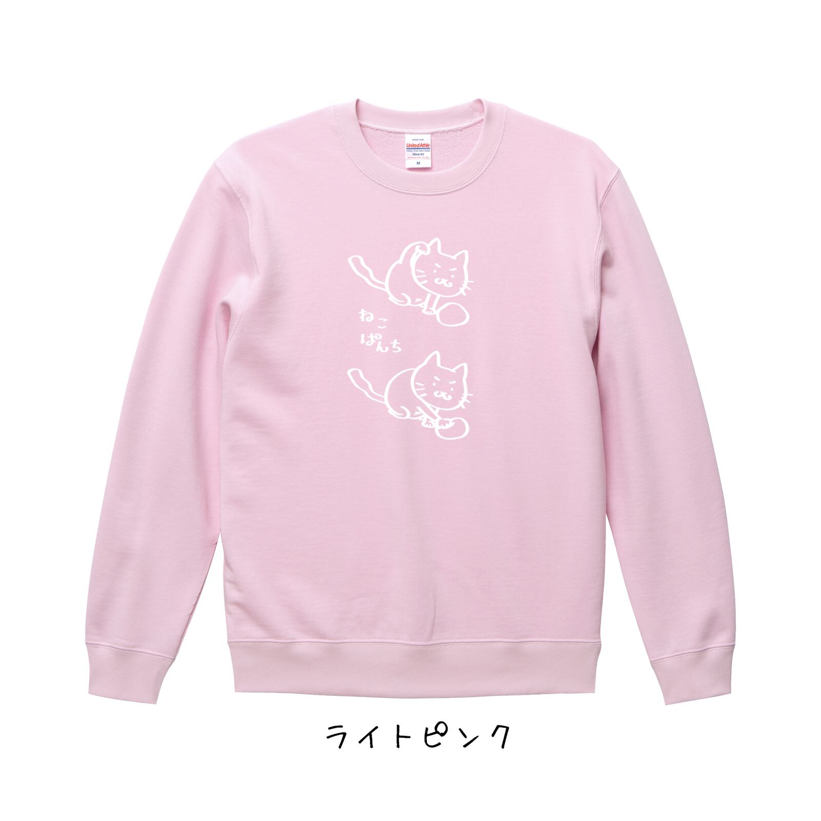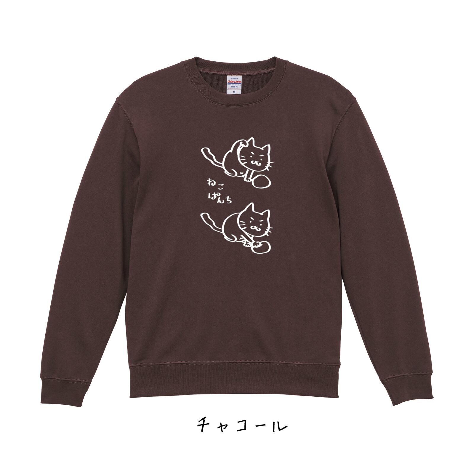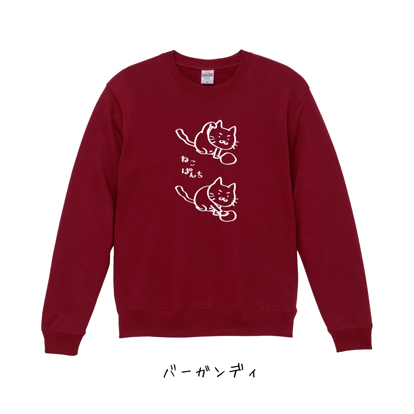 選べる10色!スウェット(裏パイル)ねこぱんち柄トレーナー ですもに