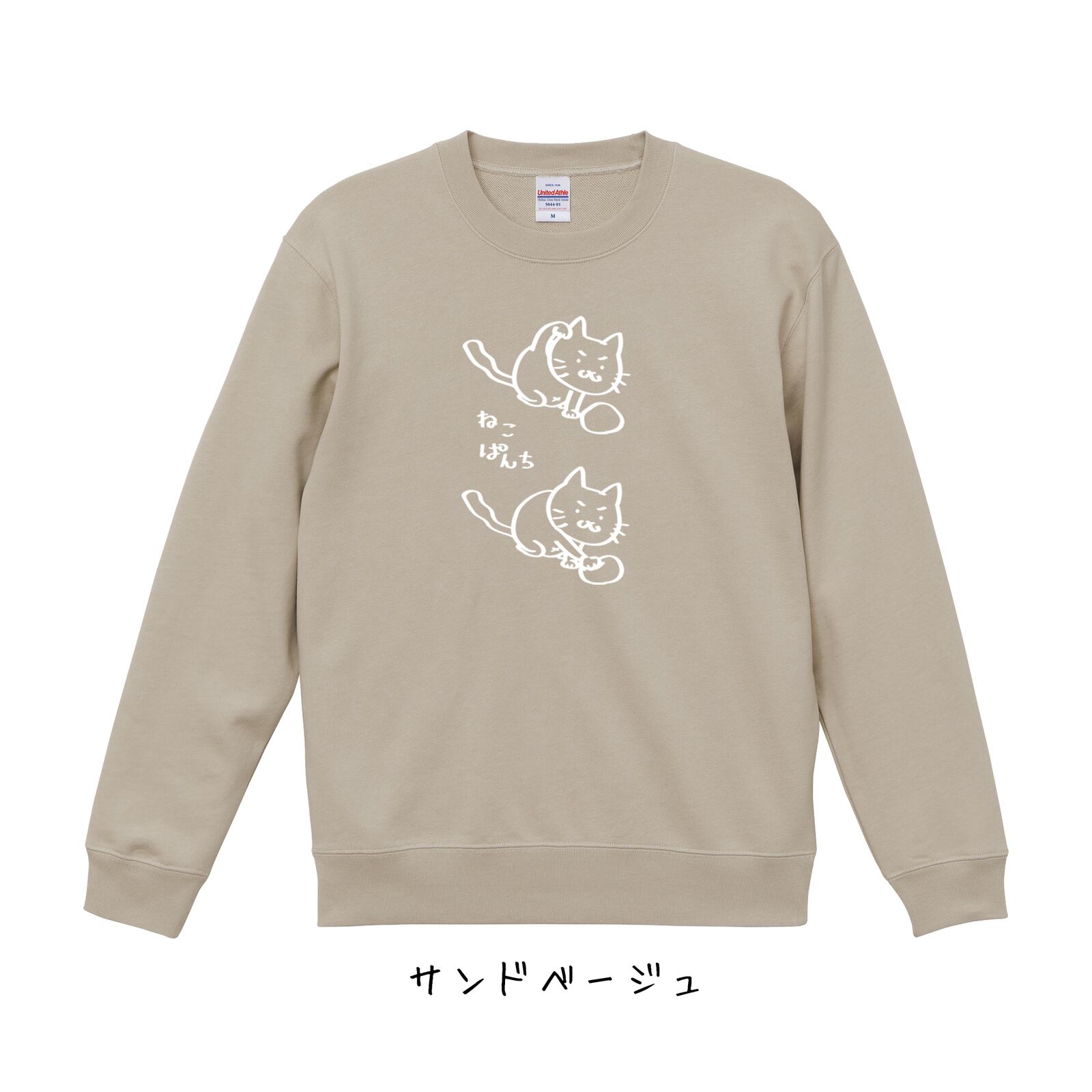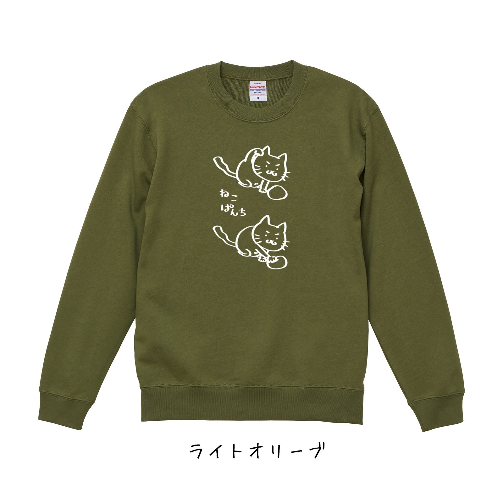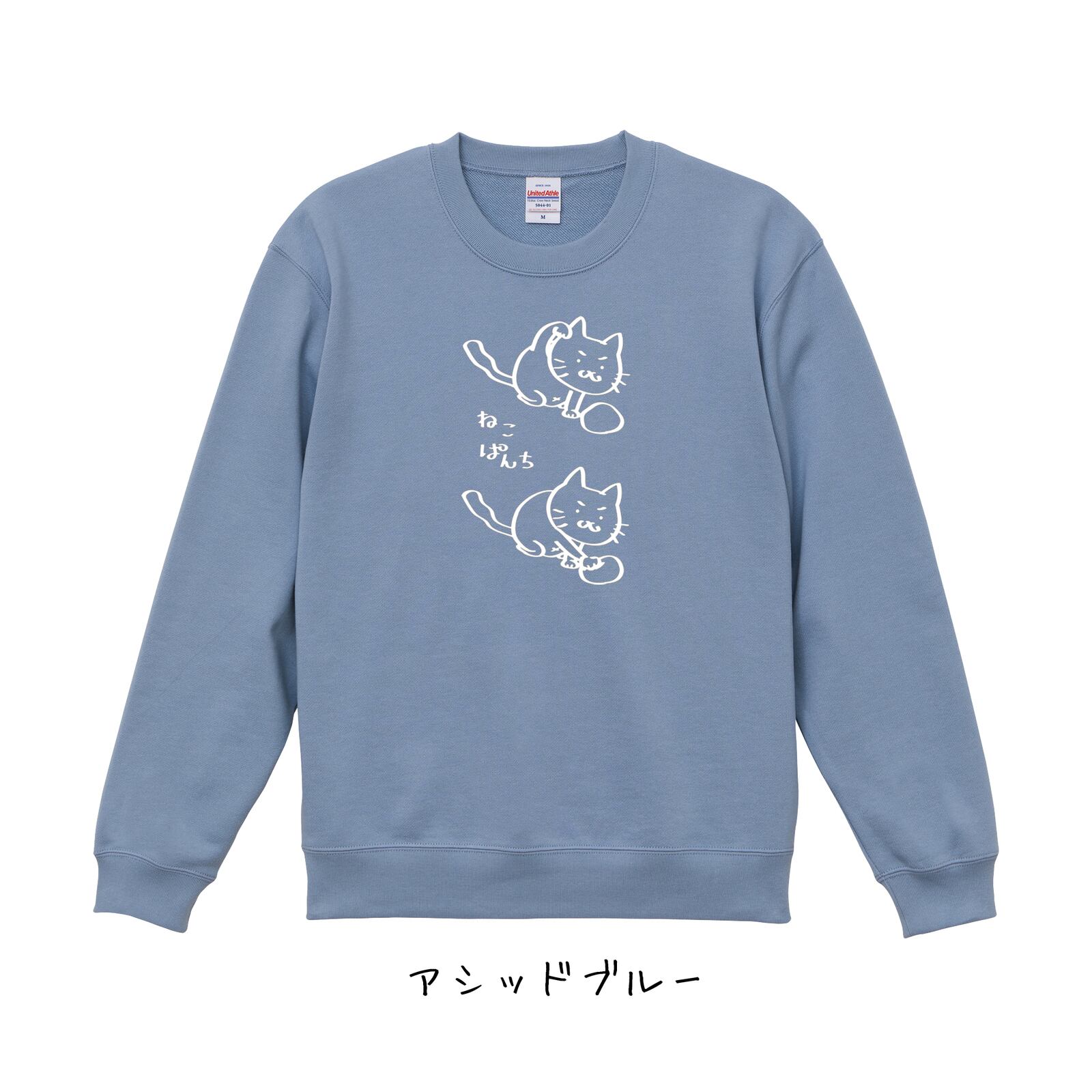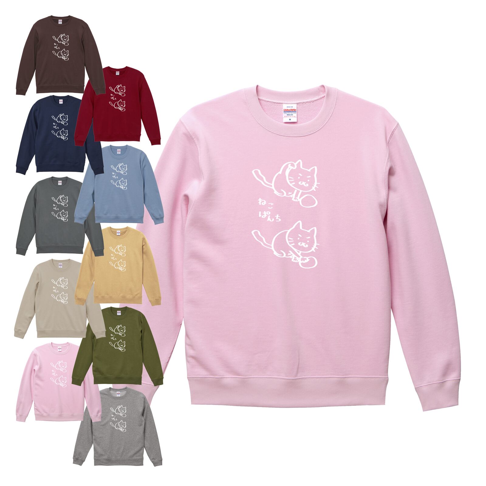 選べる10色!スウェット(裏パイル)ねこぱんち柄トレーナー 受注生産