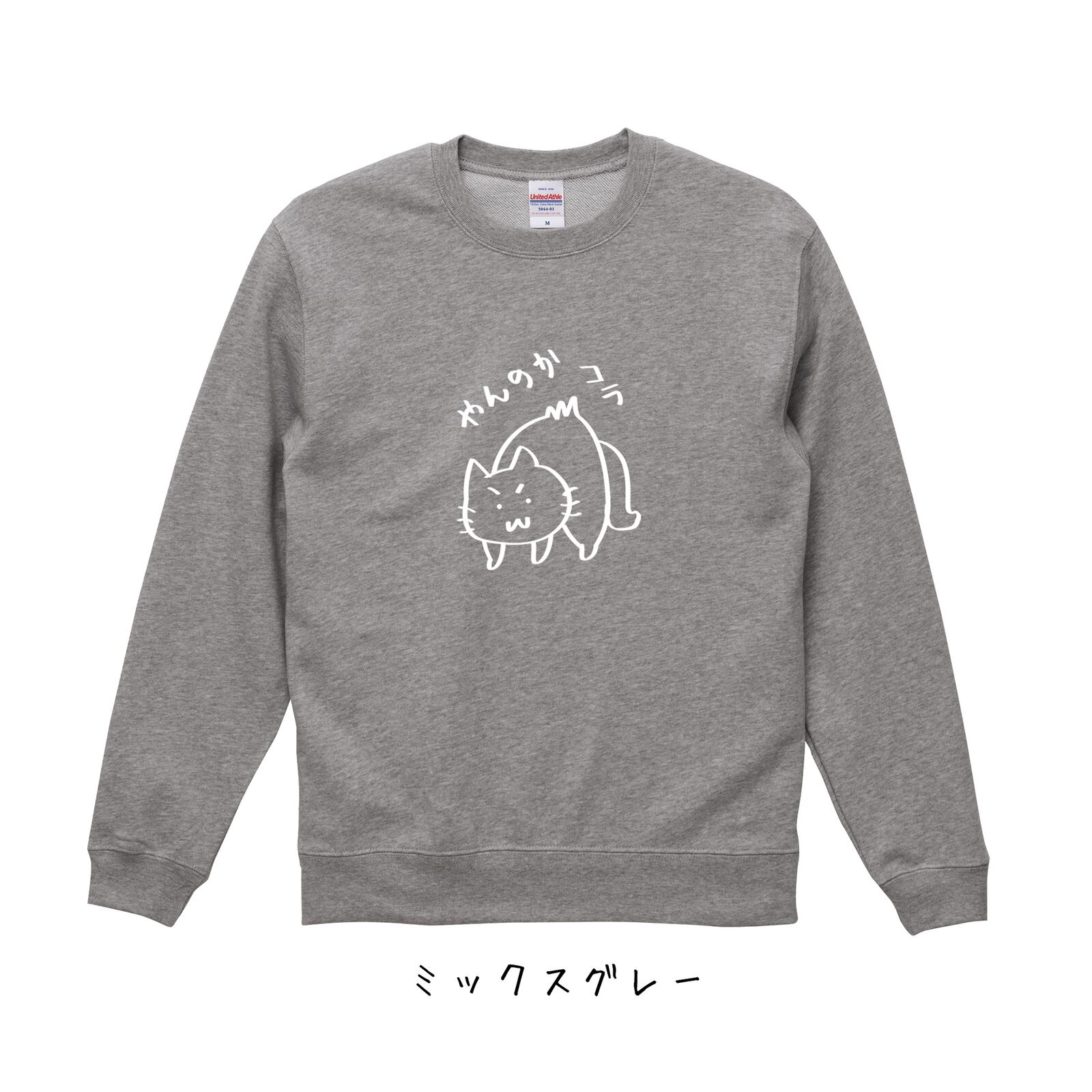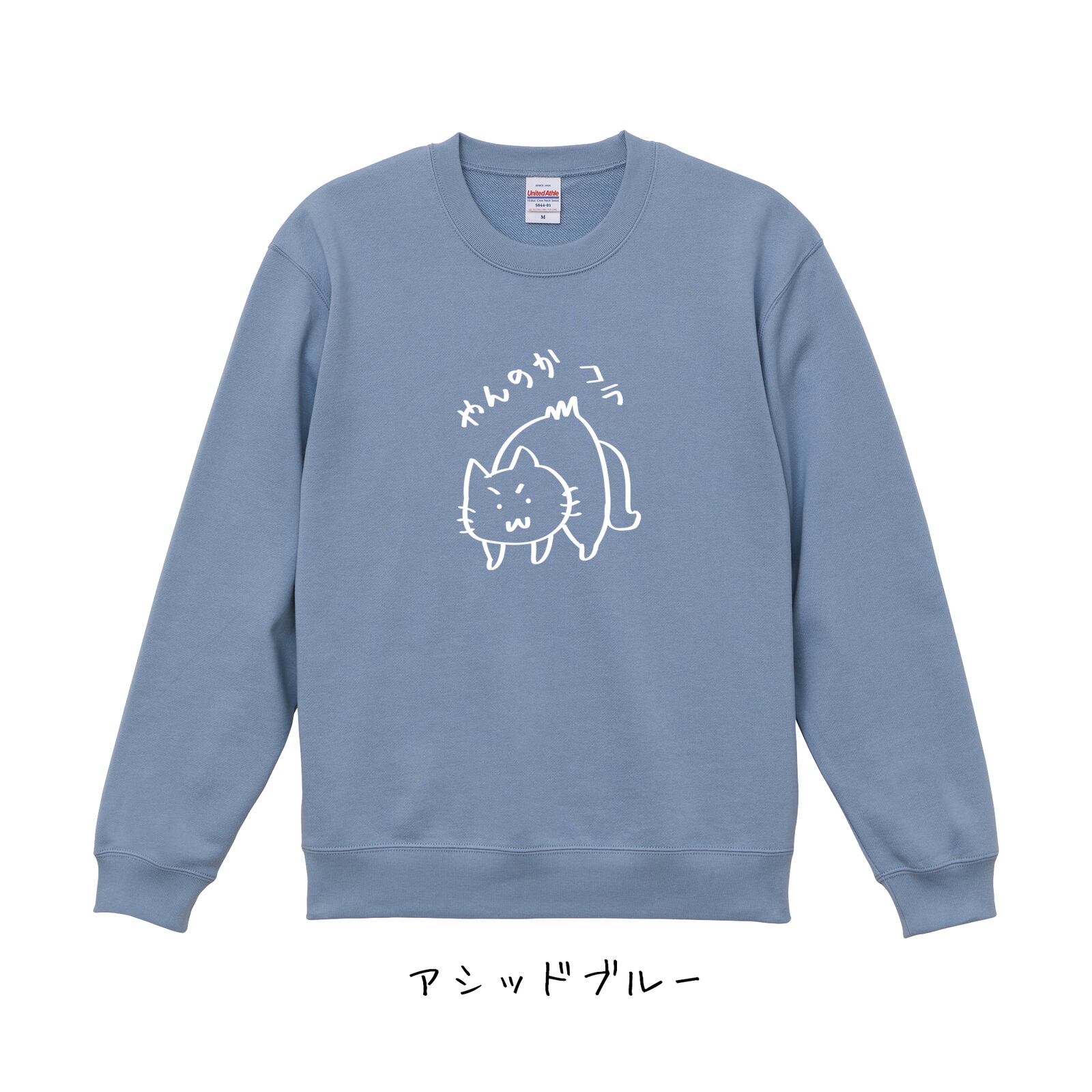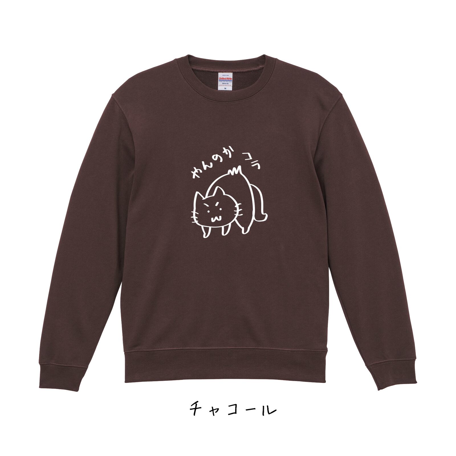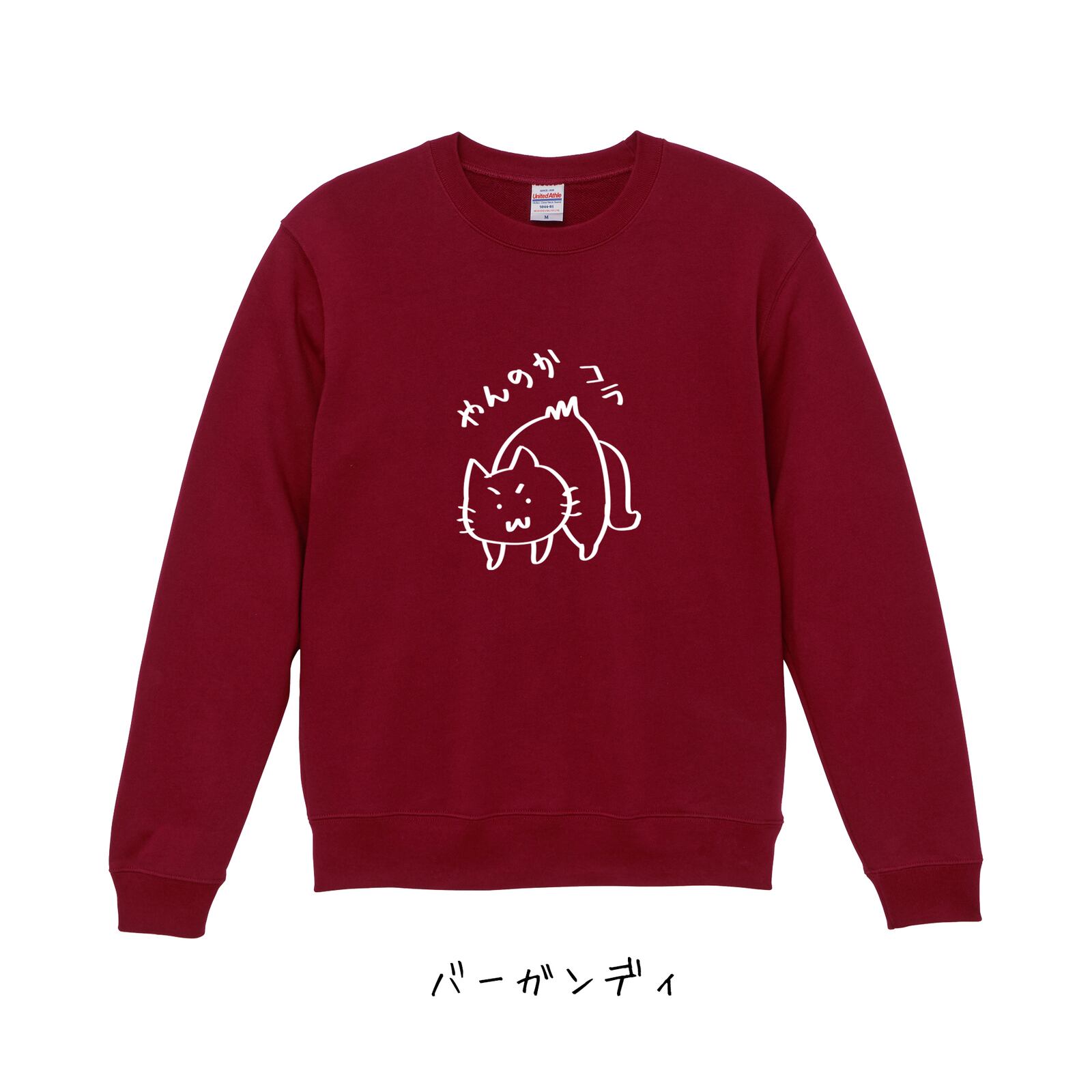 選べる10色!スウェット(裏パイル)おこりんぼ猫柄トレーナー ですもに