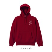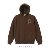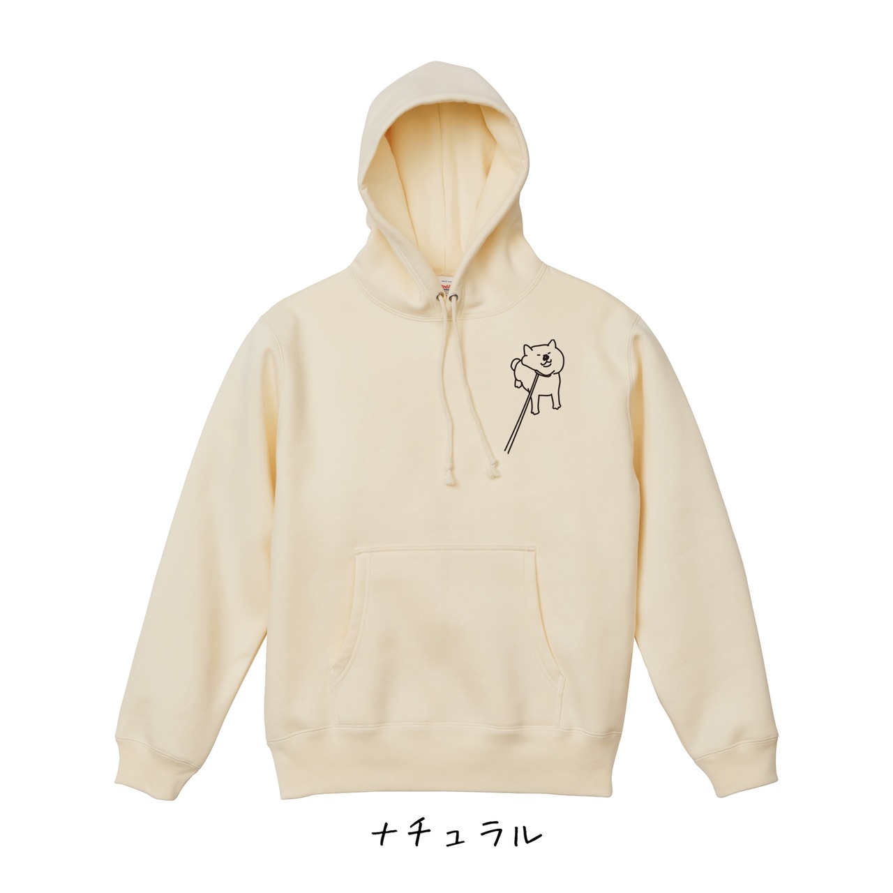 お好きなカラーとサイズのパーカー左胸に、ワンポイント「帰りたくない犬」ちゃんをプリントするもによ